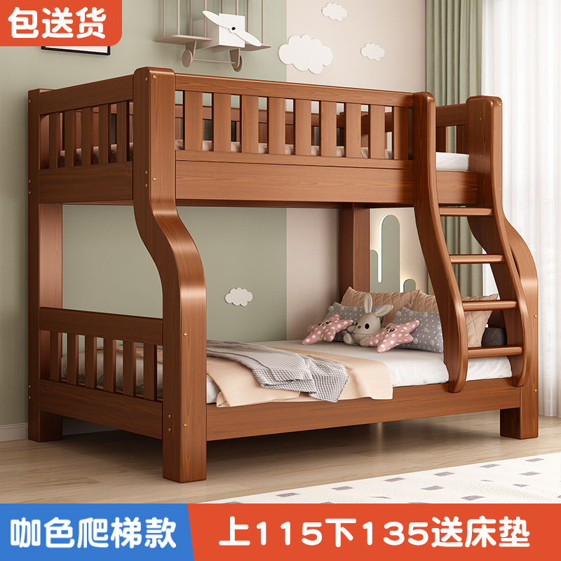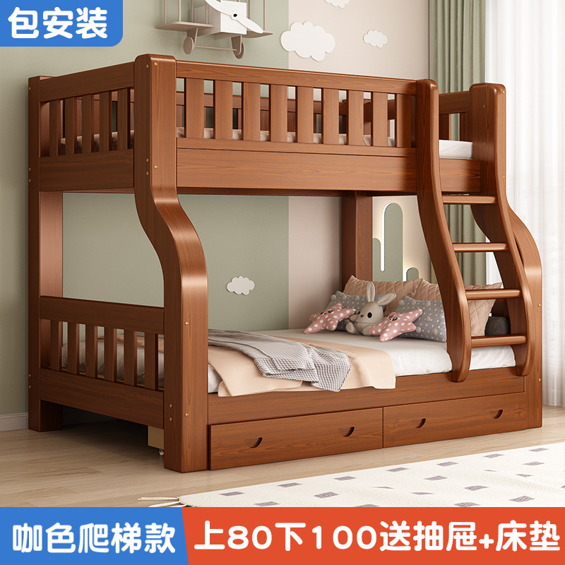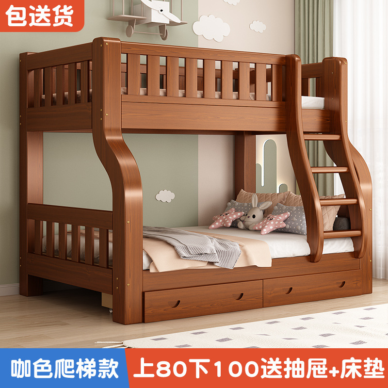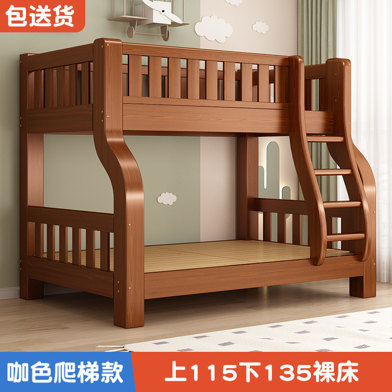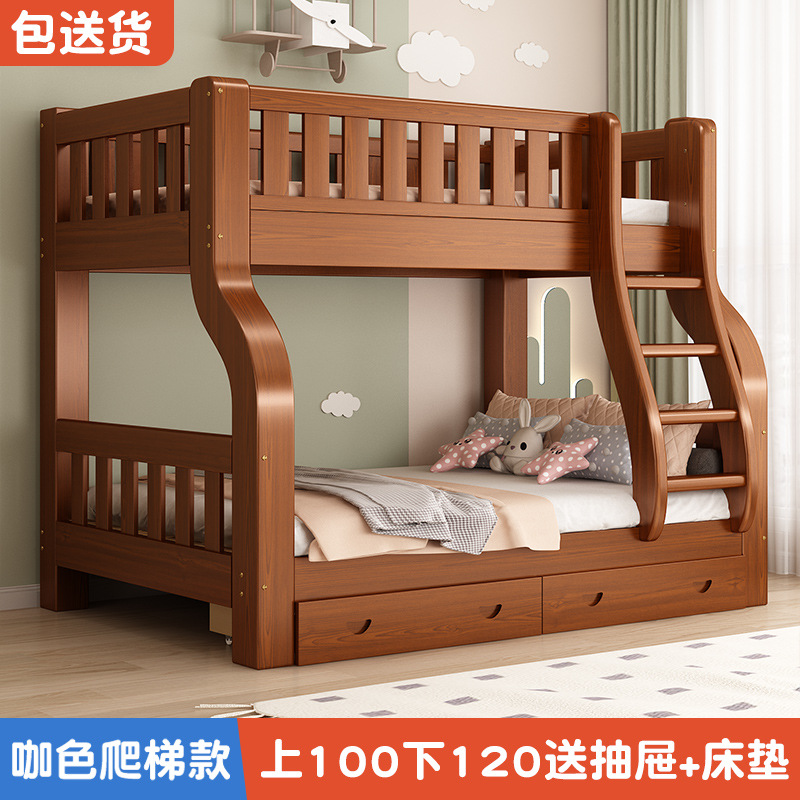 하이 로우 침대 이층 침대 상단 및 하단 침대 단단한 나무 어린이 침대 커피 컬러 다기능 디자인