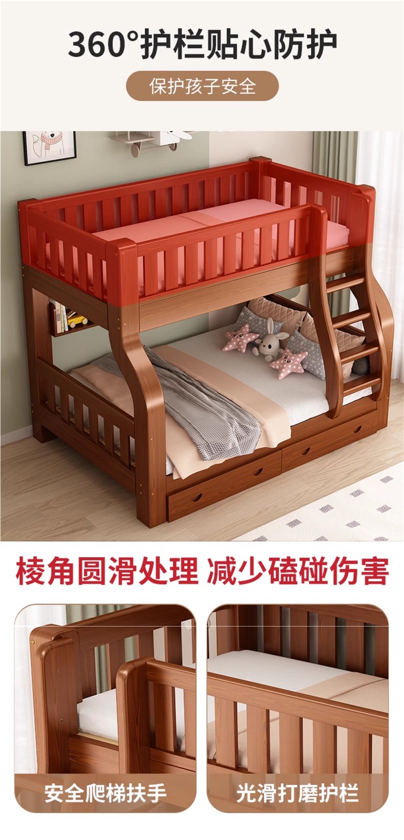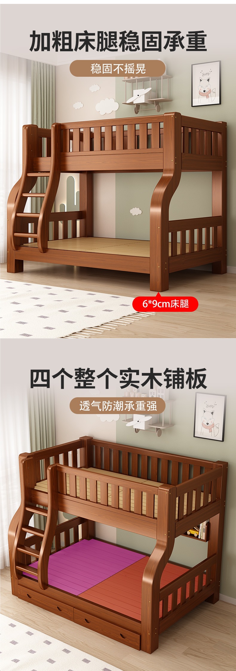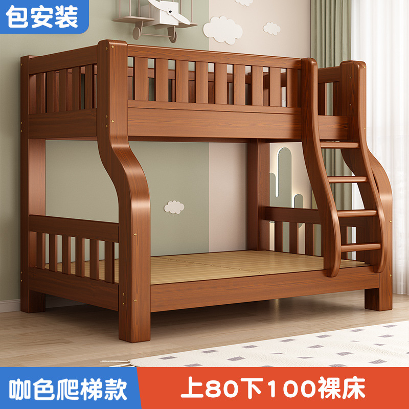 하이 로우 침대 이층 침대 상단 및 하단 침대 단단한 나무 어린이 침대 커피 컬러 다기능 디자인