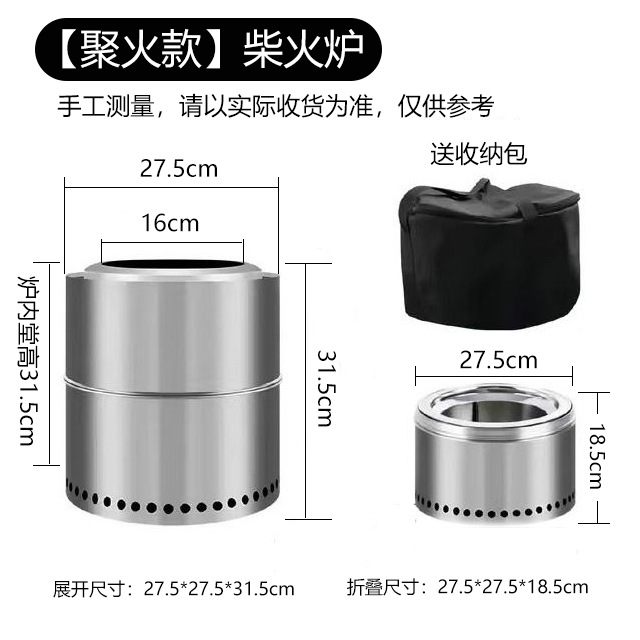 캠핑 야외 장작 스토브 두꺼운 스테인레스 스틸 접이식 방풍 장작 숯 고체 알코올 휴대용 야외 스토브스토어 가기