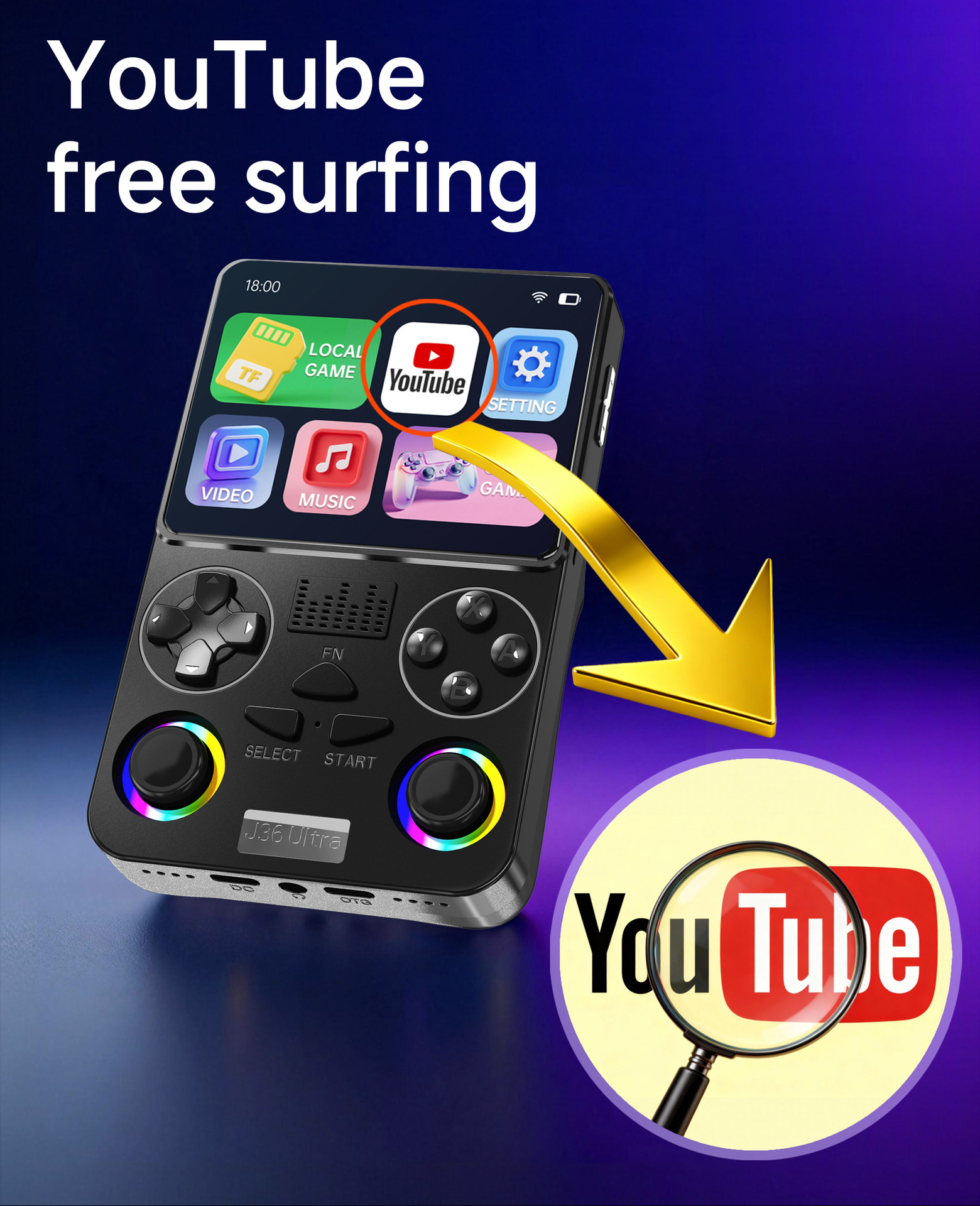 유튜브 영상을 볼 수 있는 게임기 J36 Ultra J36 안드로이드 휴대용 게임기 J36 휴대용 게임기스토어 가기