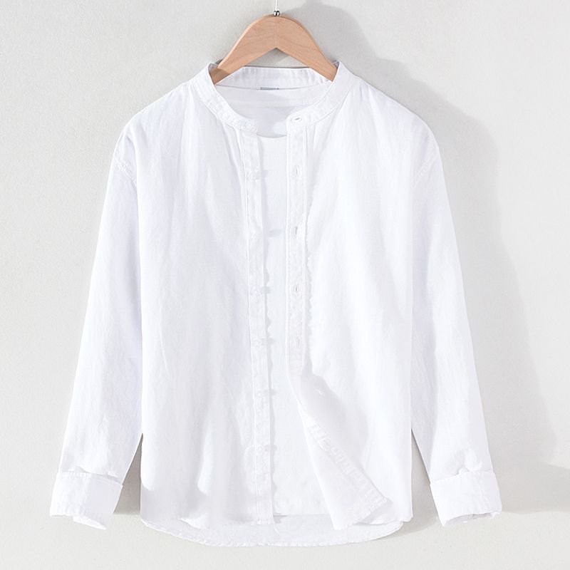 흰색 긴팔 셔츠 정장 남성 바지 여름 느슨한 통기성 면 및 린넨 중국 스탠드 칼라 셔츠 남성 스트레이트 바지