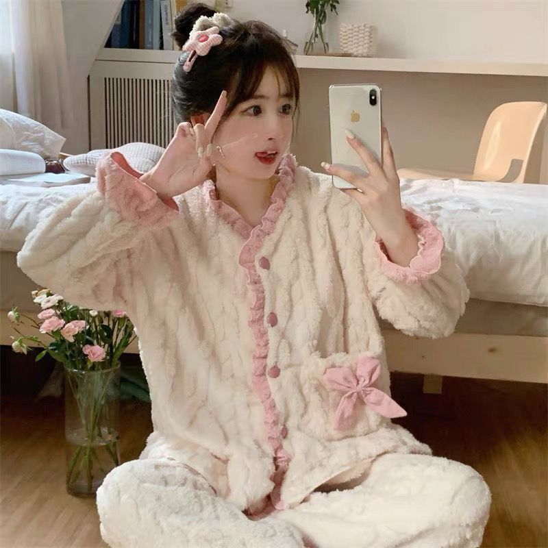 • 살구 브이넥 레이스 벨벳 [후리스슈트]