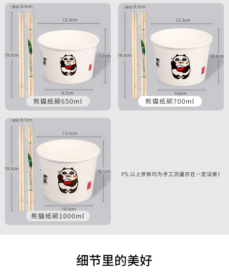 • 【50세트】팬더 그릇 650ML + 젓가락 ⚑ ⚑