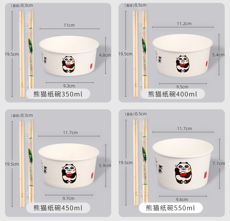 • 【100세트】팬더 그릇 550ML + 젓가락 ⚑ ⚑