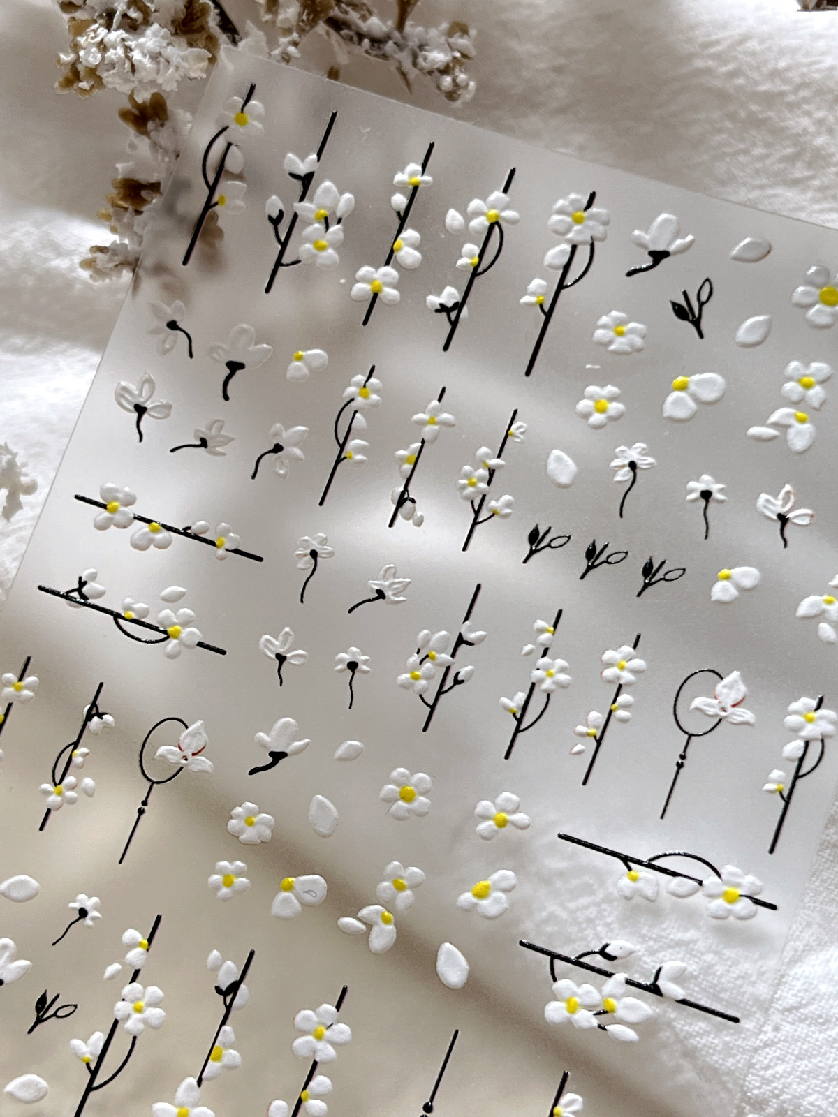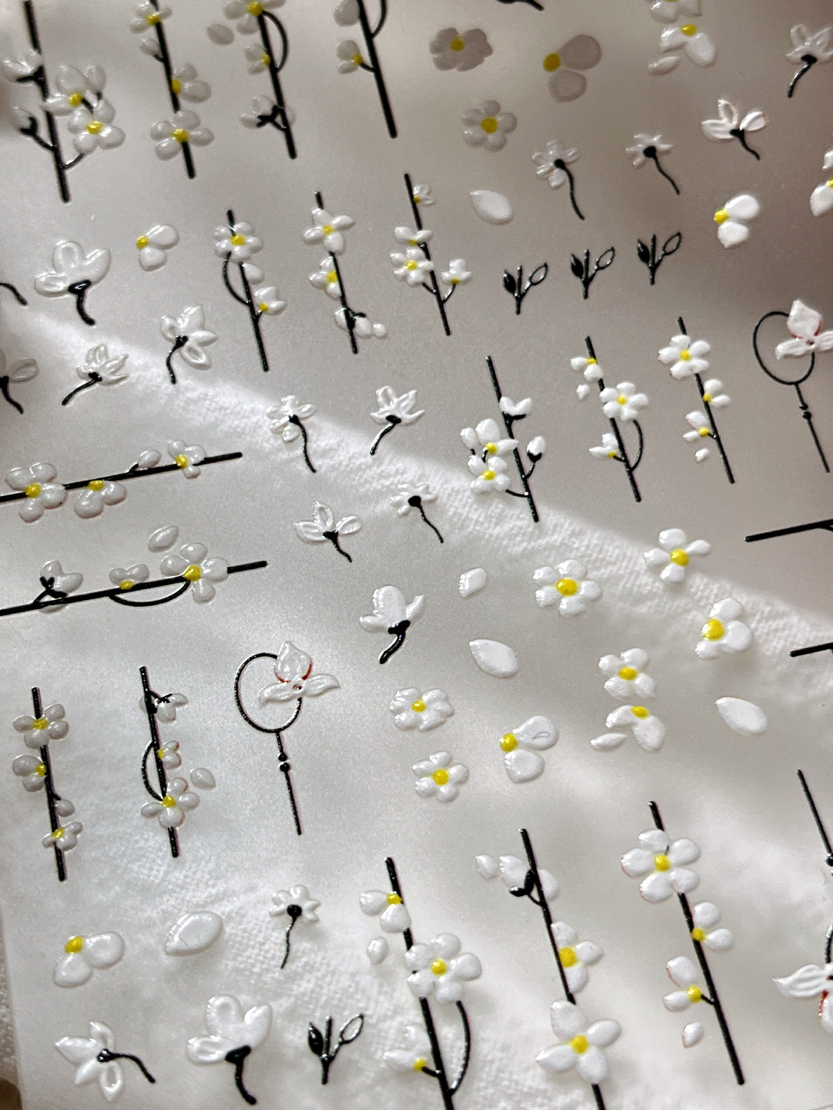 YITU 엘리베이티드 화이트 플라워 크로스보더 네일 아트 스티커 심플 솔리드 컬러 데일리 다용도 장식 스티커 YT6177스토어 가기