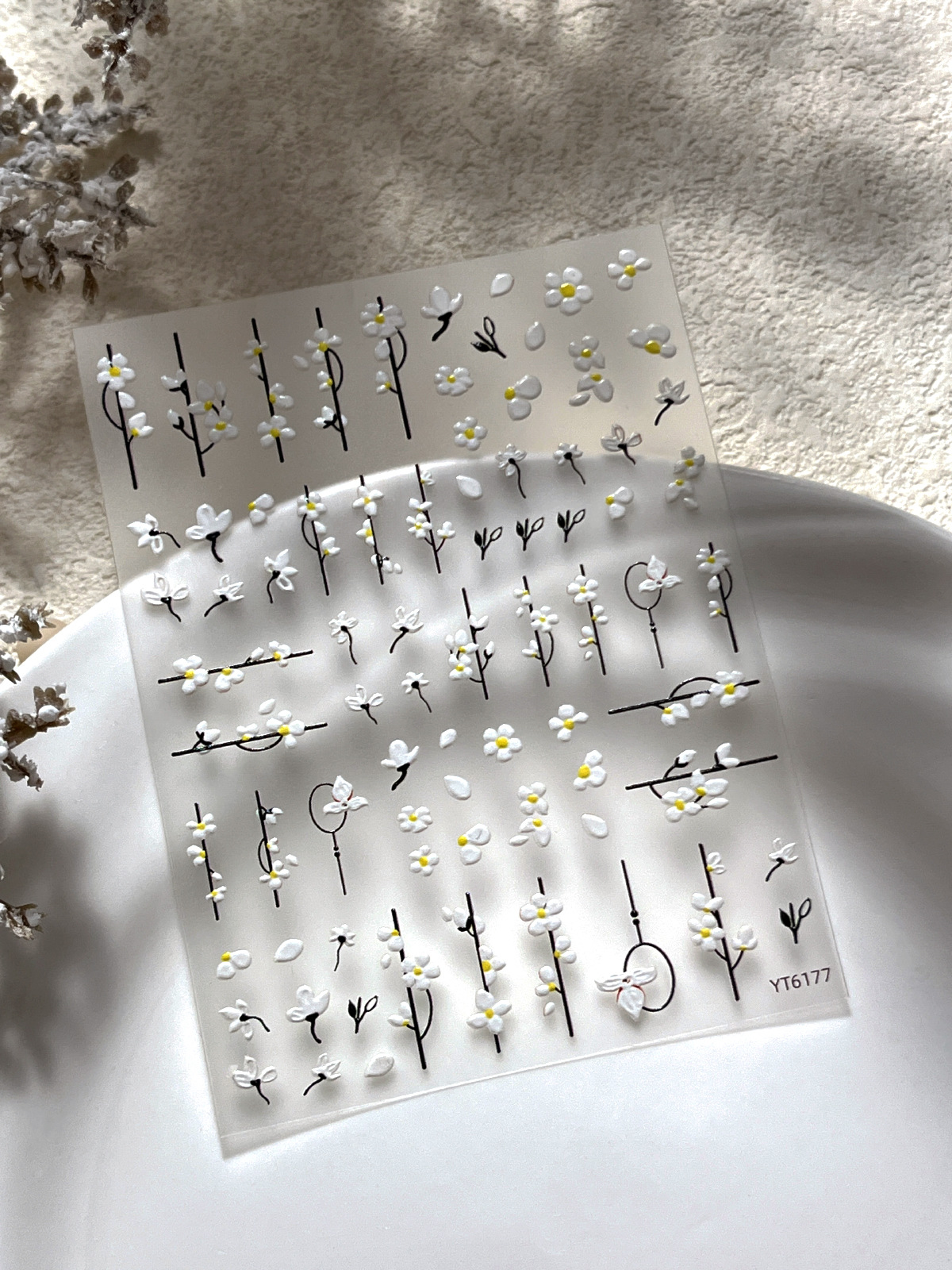 YITU 엘리베이티드 화이트 플라워 크로스보더 네일 아트 스티커 심플 솔리드 컬러 데일리 다용도 장식 스티커 YT6177