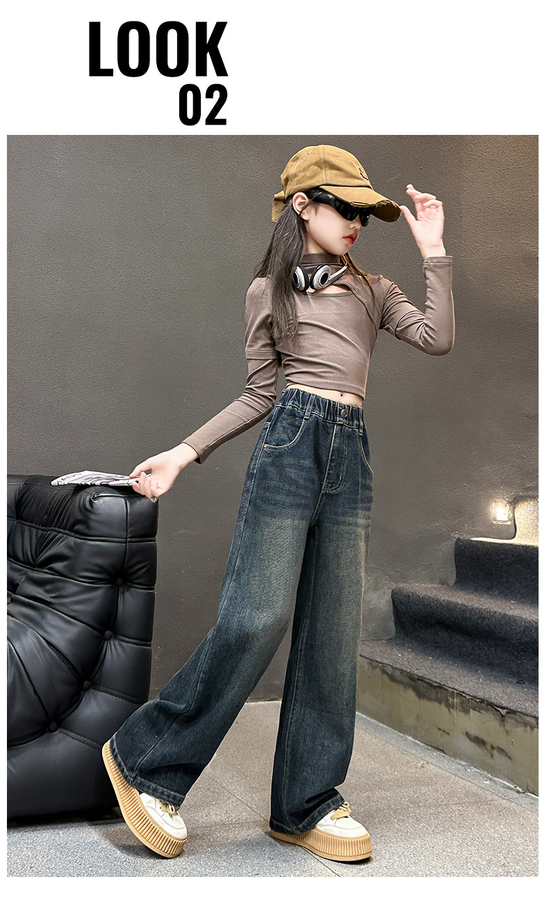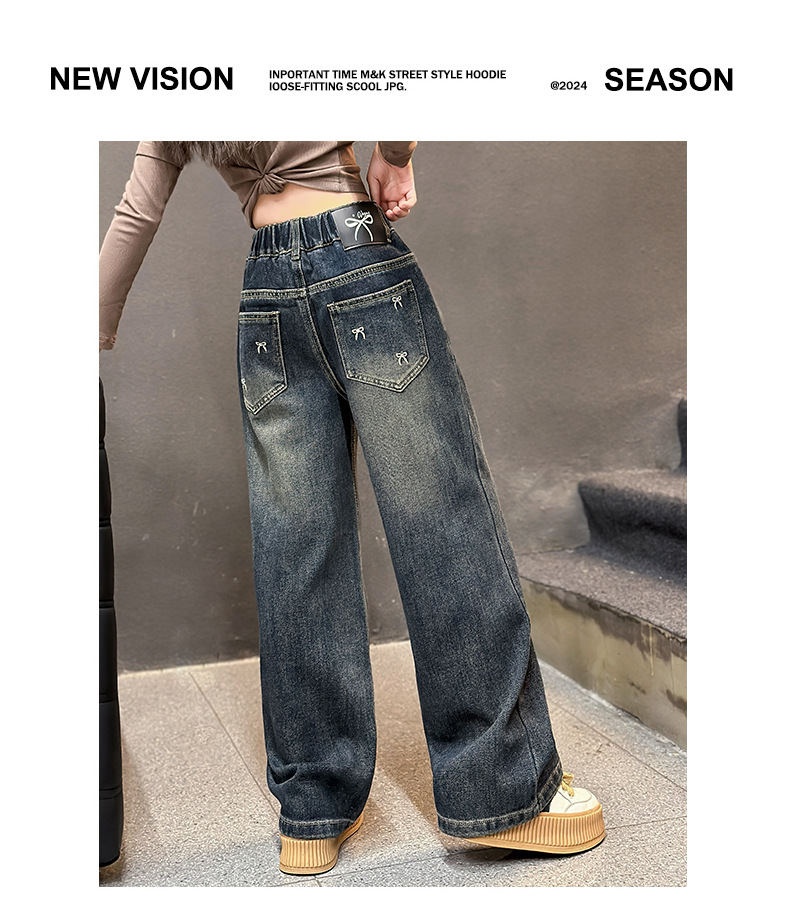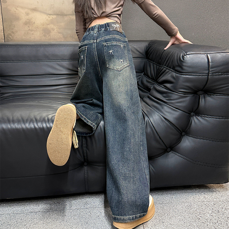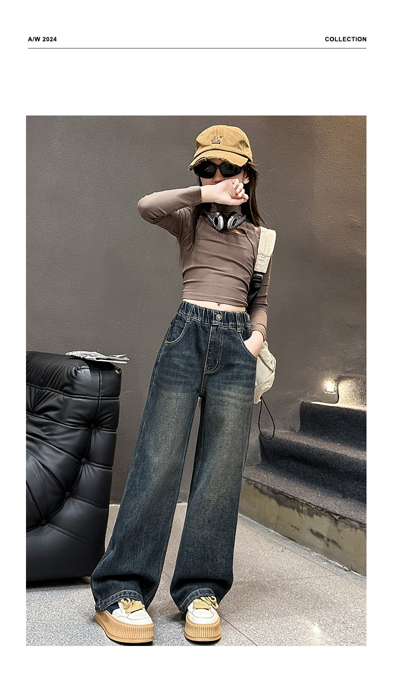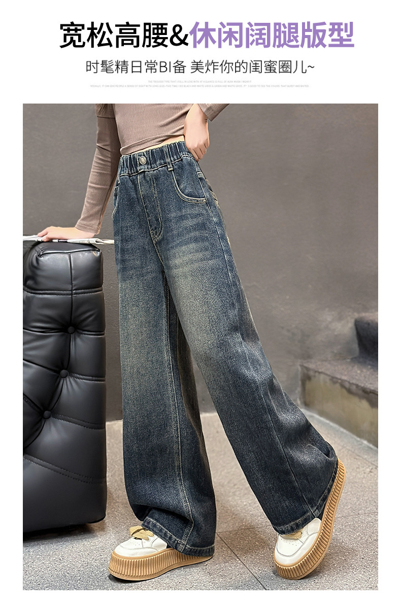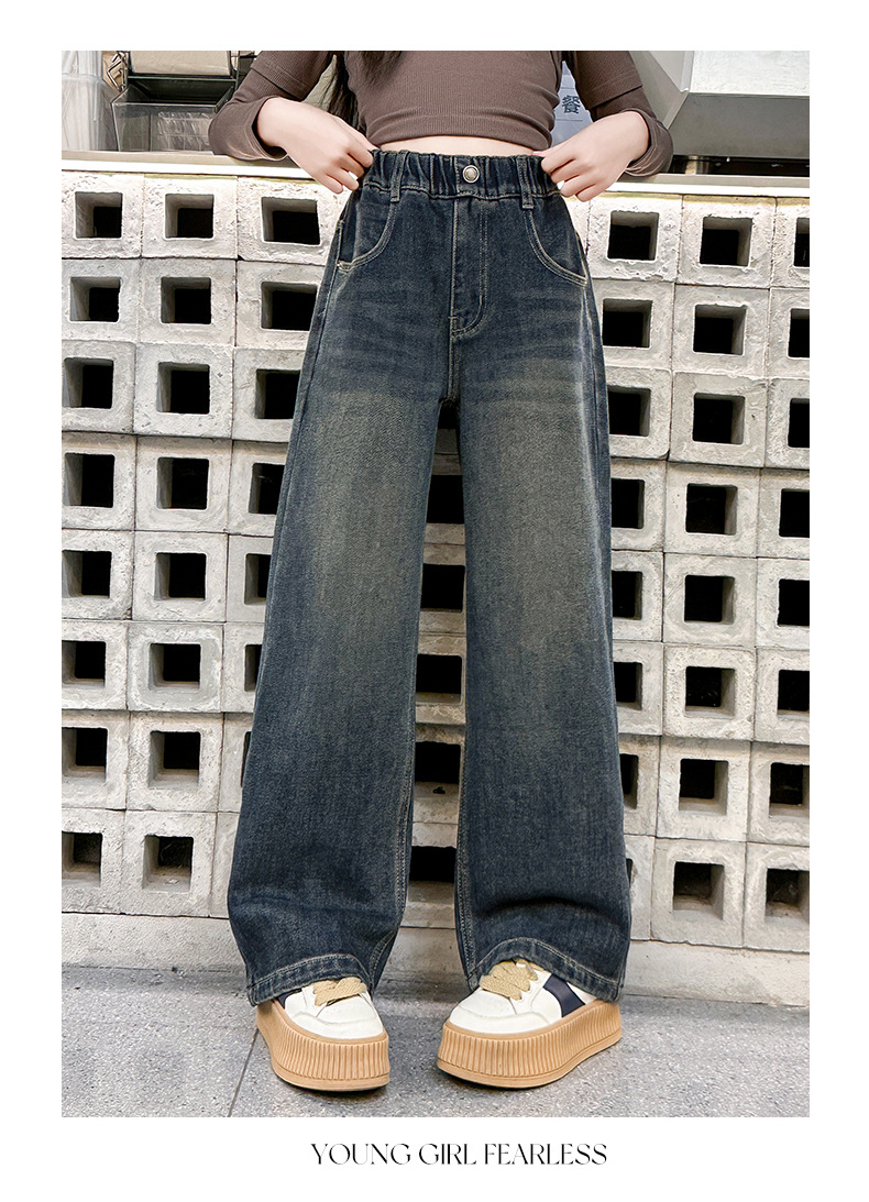 여아 청바지 봄, 가을 루즈하고 트렌디하며 멋진 큰 어린이 가을 캐주얼 인터넷 연예인 스트리트 와이드 팬츠 가을 어린이 바지스토어 가기