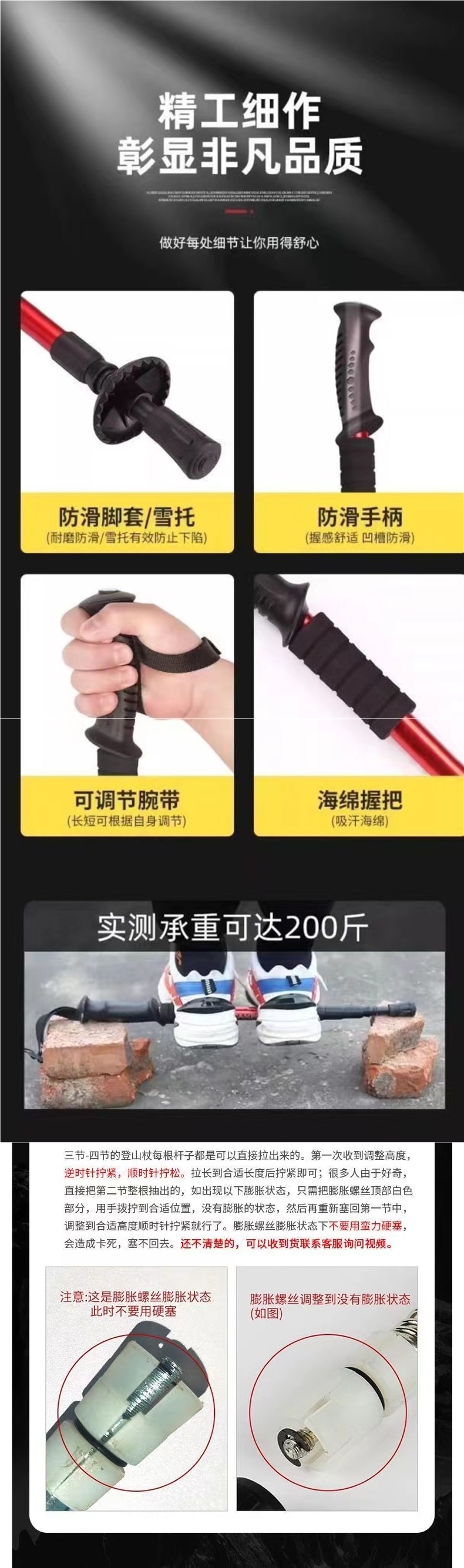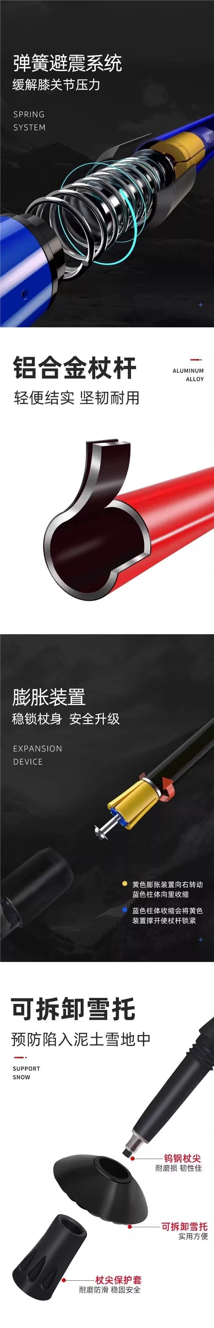 트레킹 스틱, 초경량 텔레스코픽 알루미늄 합금 지팡이, 남성과 여성을 위한 야외 다기능 하이킹 및 등산 장비스토어 가기