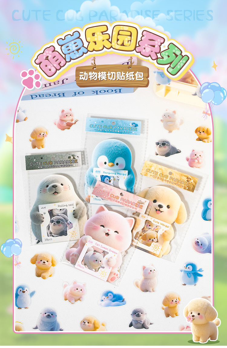 Yuxian 동물 다이 컷 애완 동물 스티커 팩 귀여운 아기 놀이터 귀여운 방수 소재 어린이 핸드북 diy 장식 스티커스토어 가기