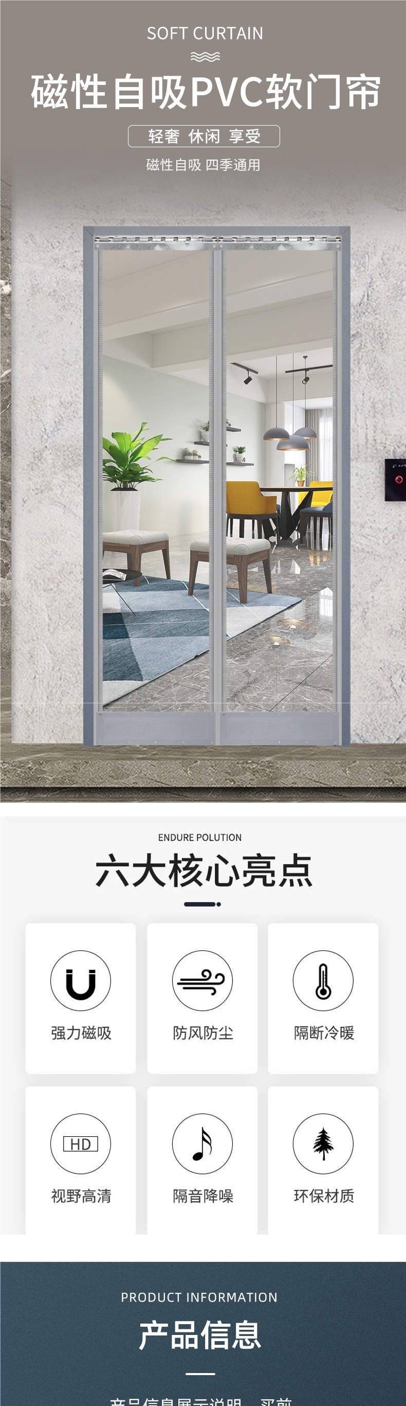 자석 도어 커튼, 에어컨, 앞유리 및 단열 칸막이 커튼, 상업용 가정용 자석 자체 흡입 투명 플라스틱 PVC 소프트 도어 커튼스토어 가기