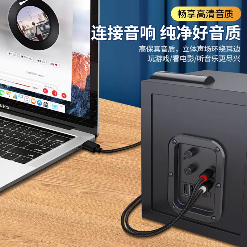 USB-듀얼 로터스 오디오 케이블 컴퓨터 노트북 전용 연결 스피커 앰프 오디오 입력 케이블 어댑터 케이블스토어 가기