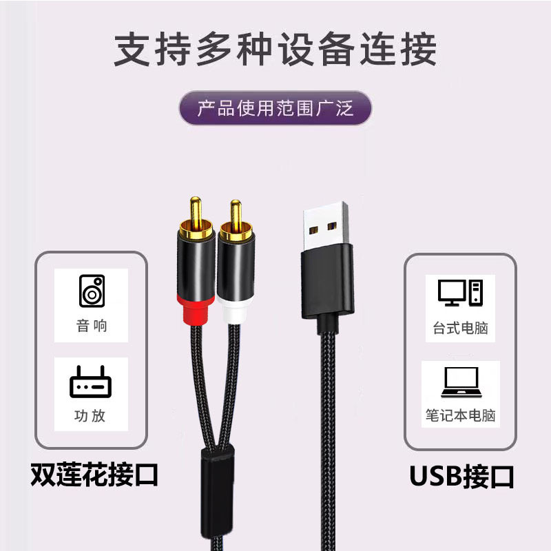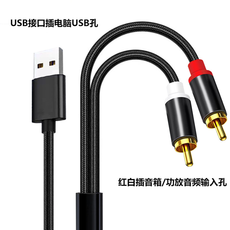 USB-듀얼 로터스 오디오 케이블 컴퓨터 노트북 전용 연결 스피커 앰프 오디오 입력 케이블 어댑터 케이블