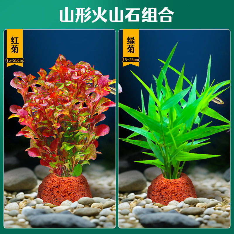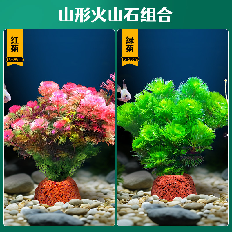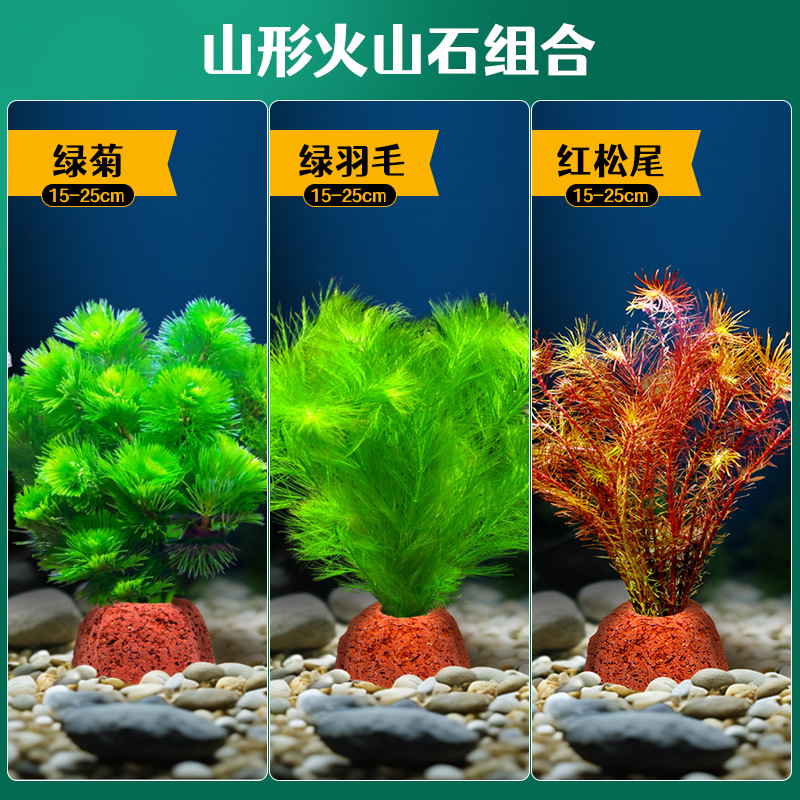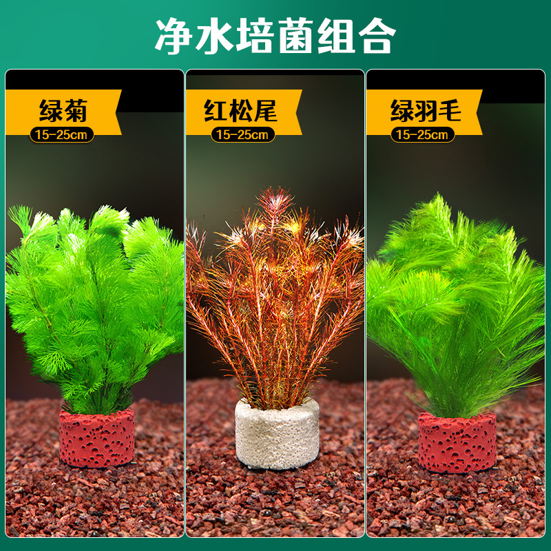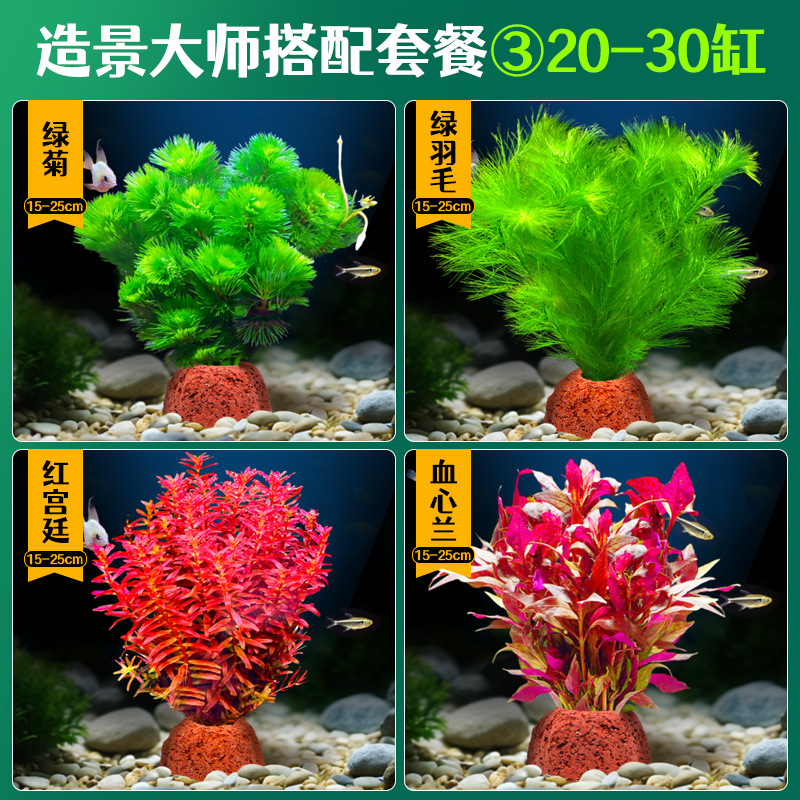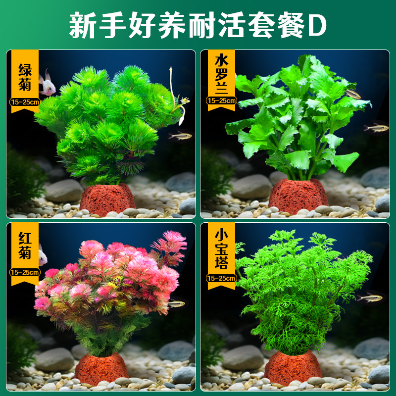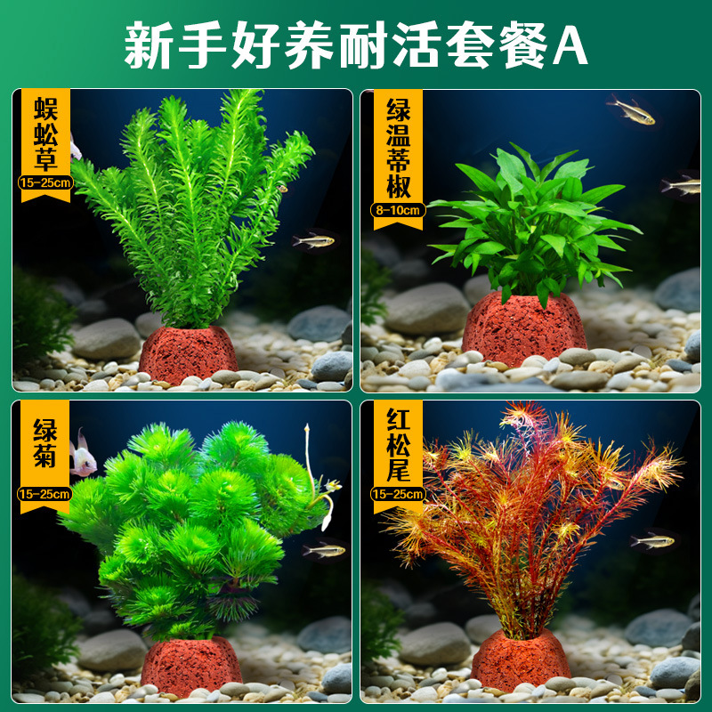어항 조경용 녹색 식물 장식 화산석 수초 식물 음성성 줄갑초 녹색 국화 진짜 풀 수초 세트