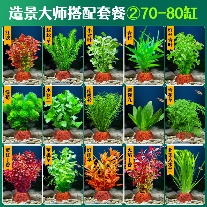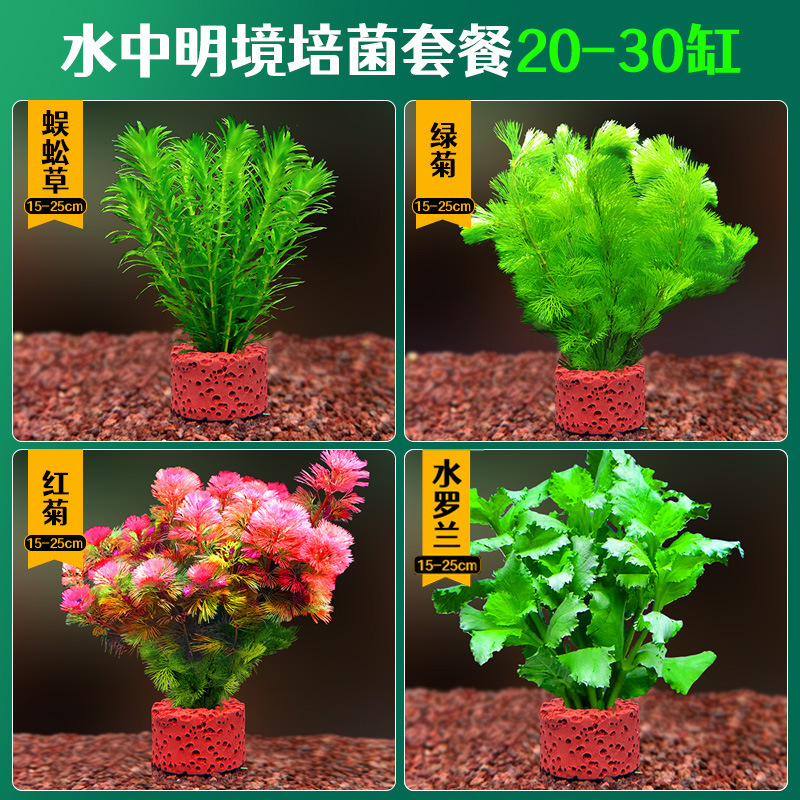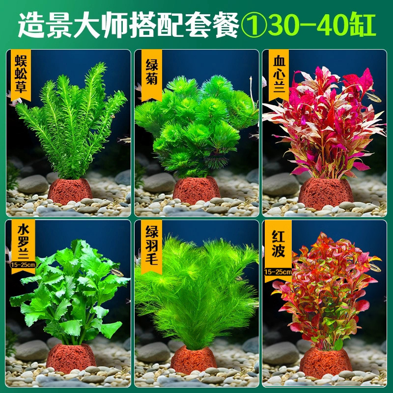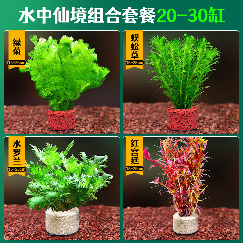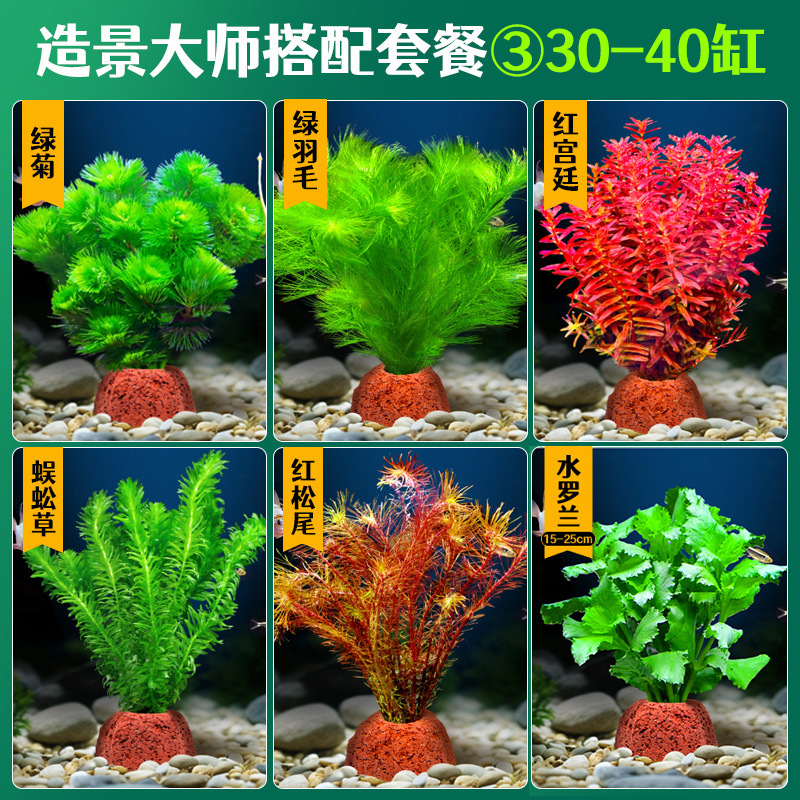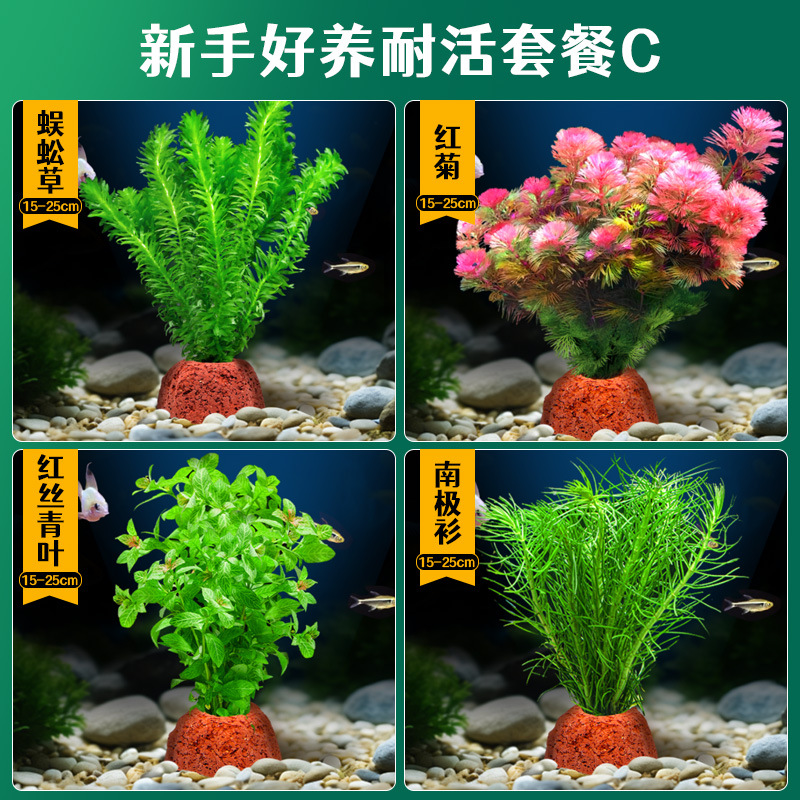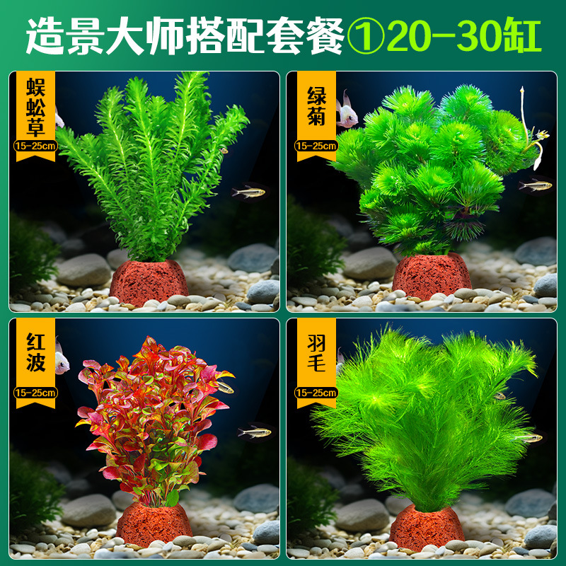 어항 조경용 녹색 식물 장식 화산석 수초 식물 음성성 줄갑초 녹색 국화 진짜 풀 수초 세트스토어 가기
