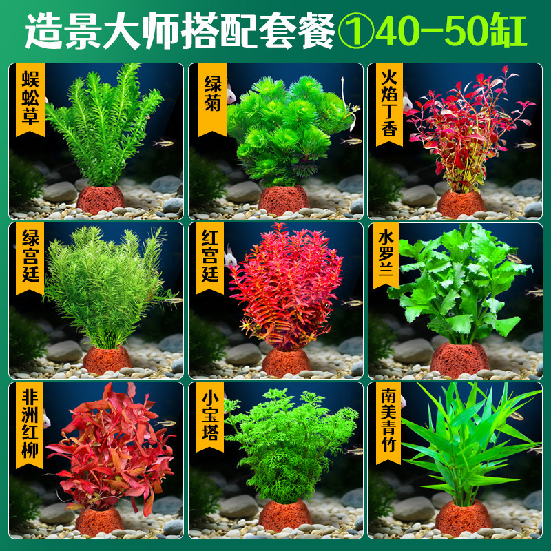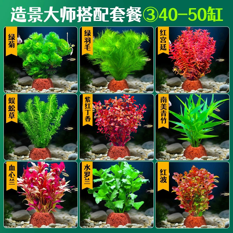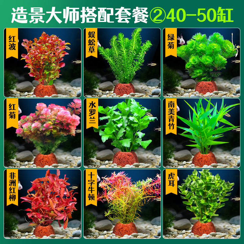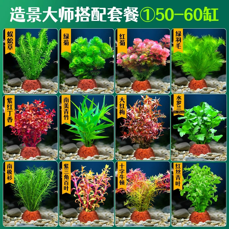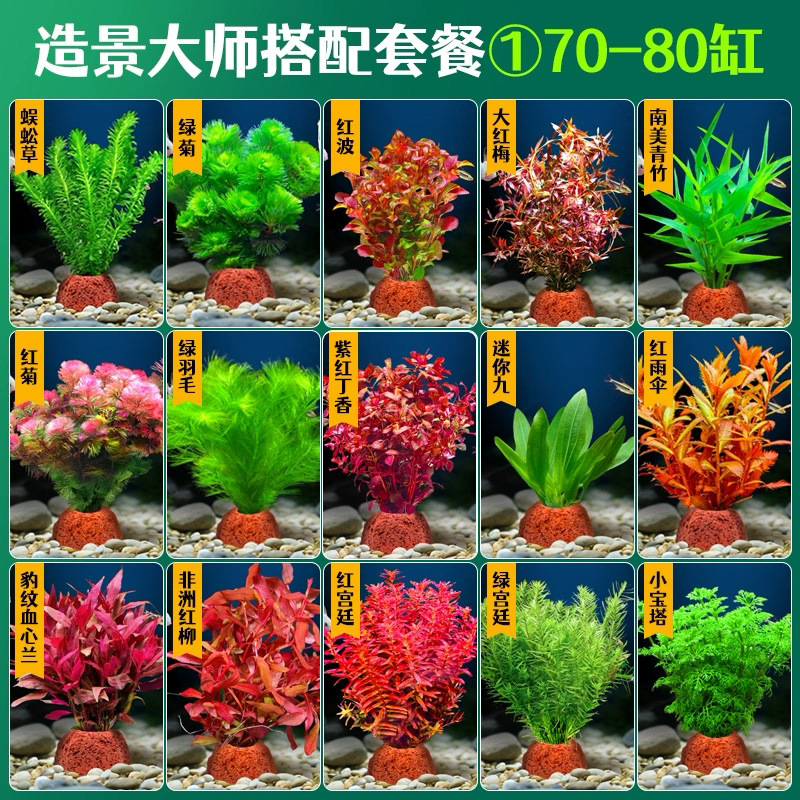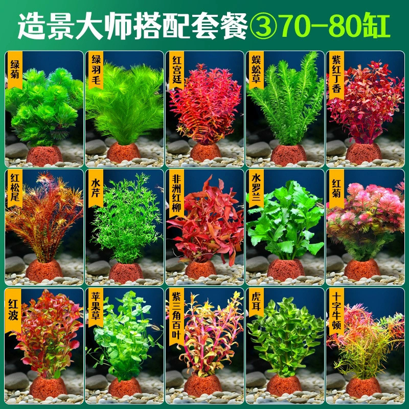 어항 조경용 녹색 식물 장식 화산석 수초 식물 음성성 줄갑초 녹색 국화 진짜 풀 수초 세트스토어 가기