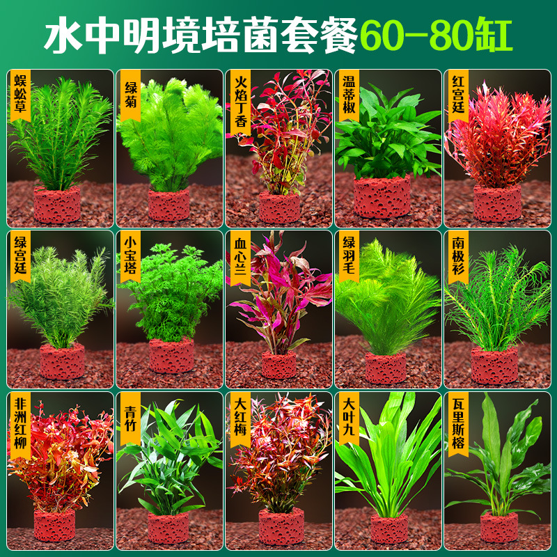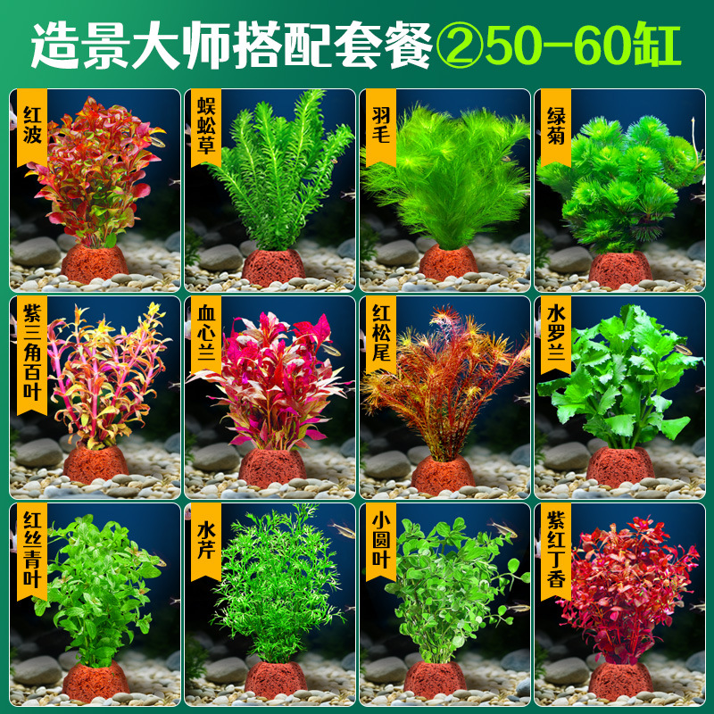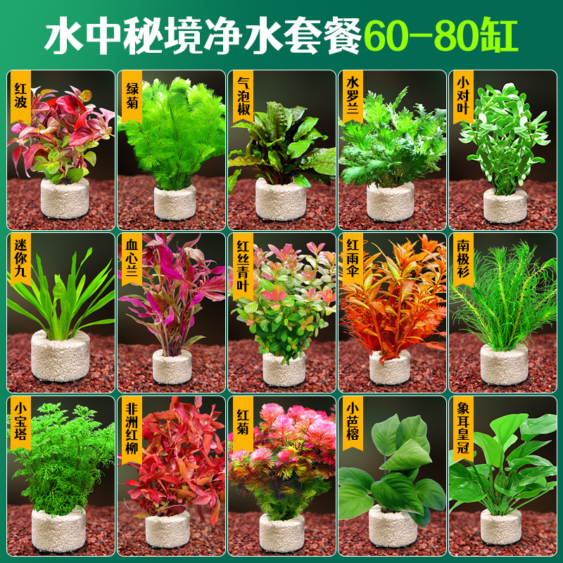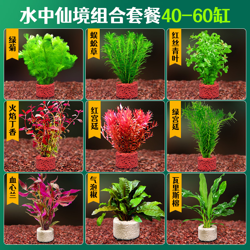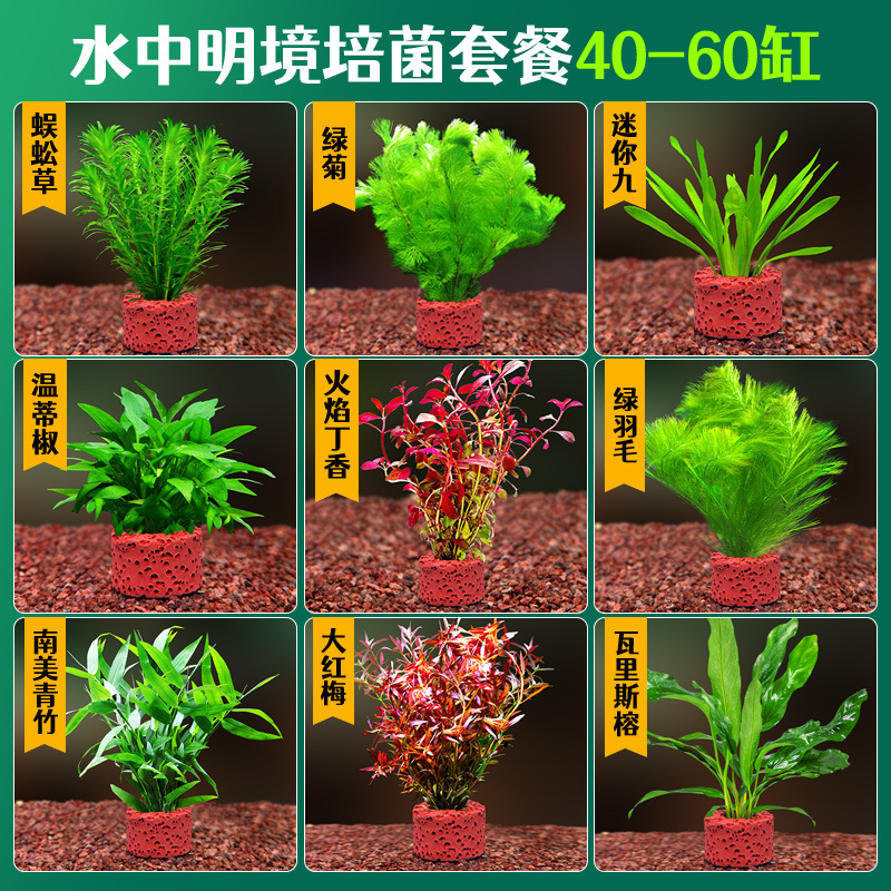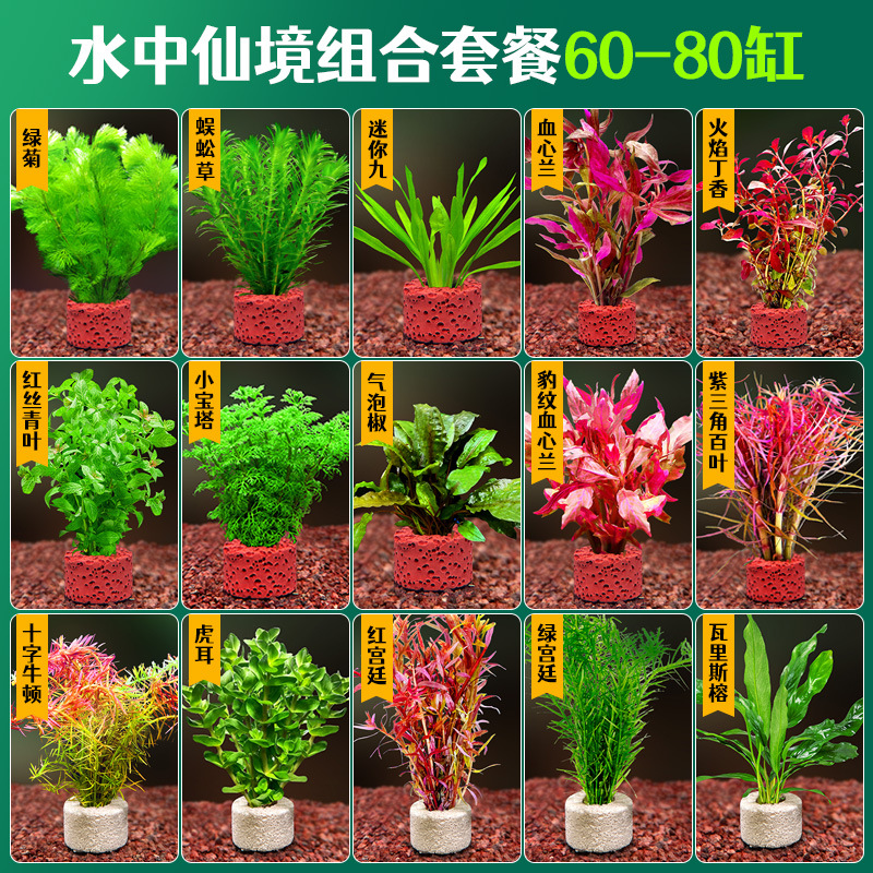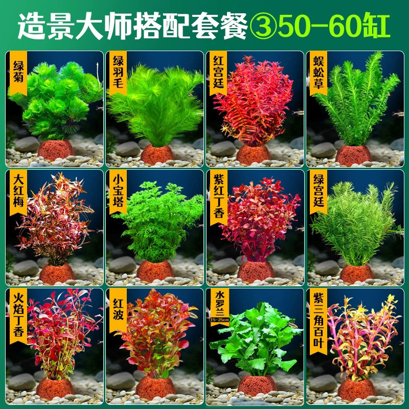 어항 조경용 녹색 식물 장식 화산석 수초 식물 음성성 줄갑초 녹색 국화 진짜 풀 수초 세트스토어 가기