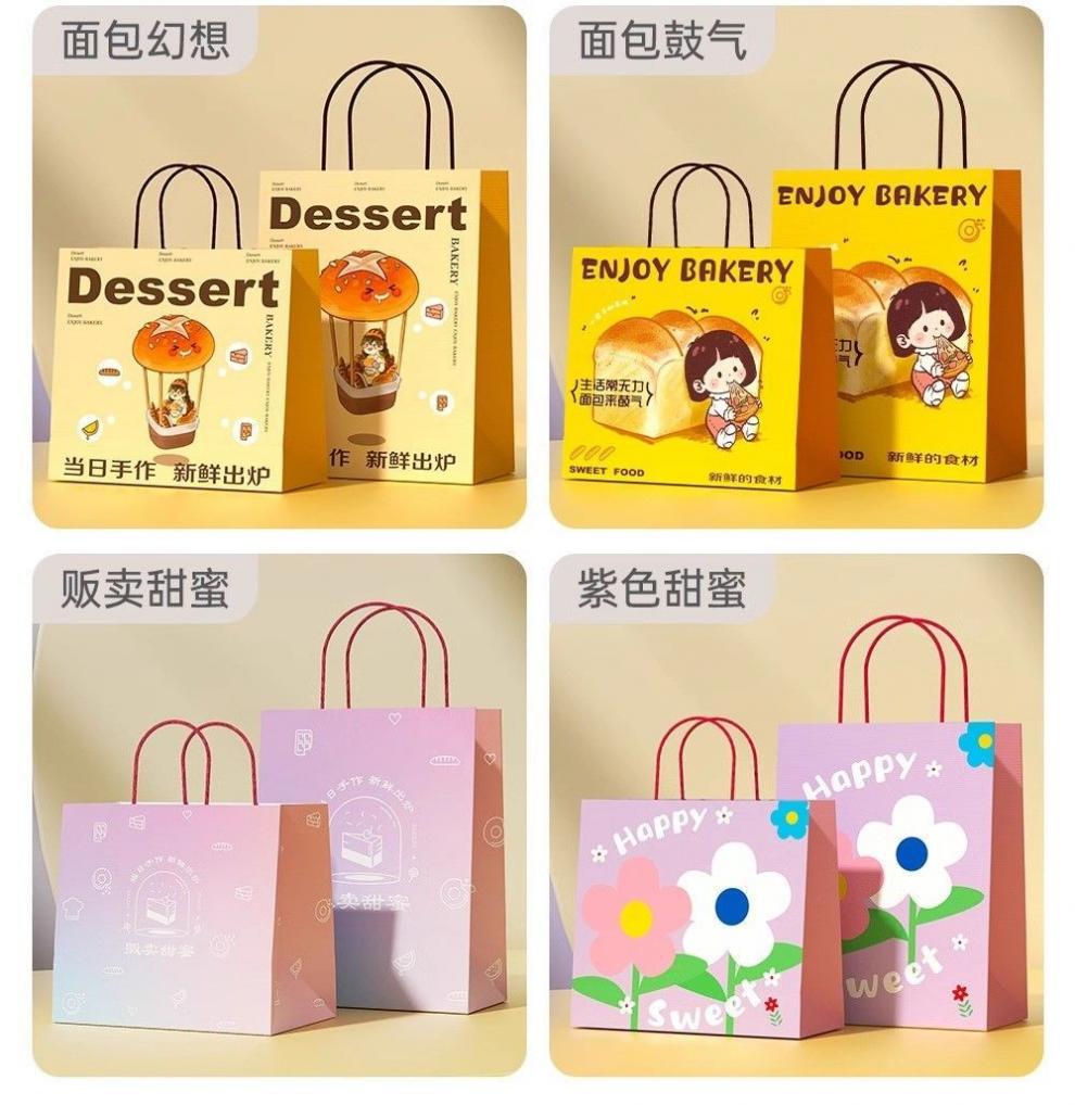 베이킹 케이크 디저트 토트 백 테이크 아웃 포장 백 크래프트 종이 봉투 포장 선물 가방 인쇄스토어 가기