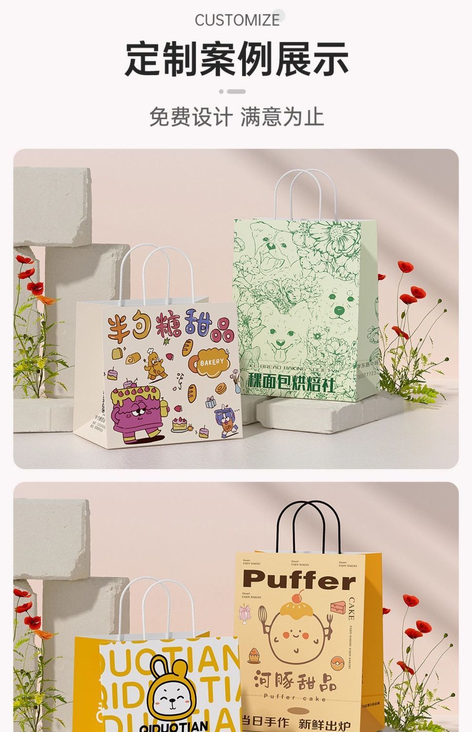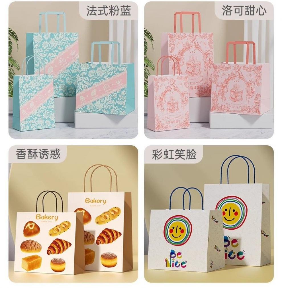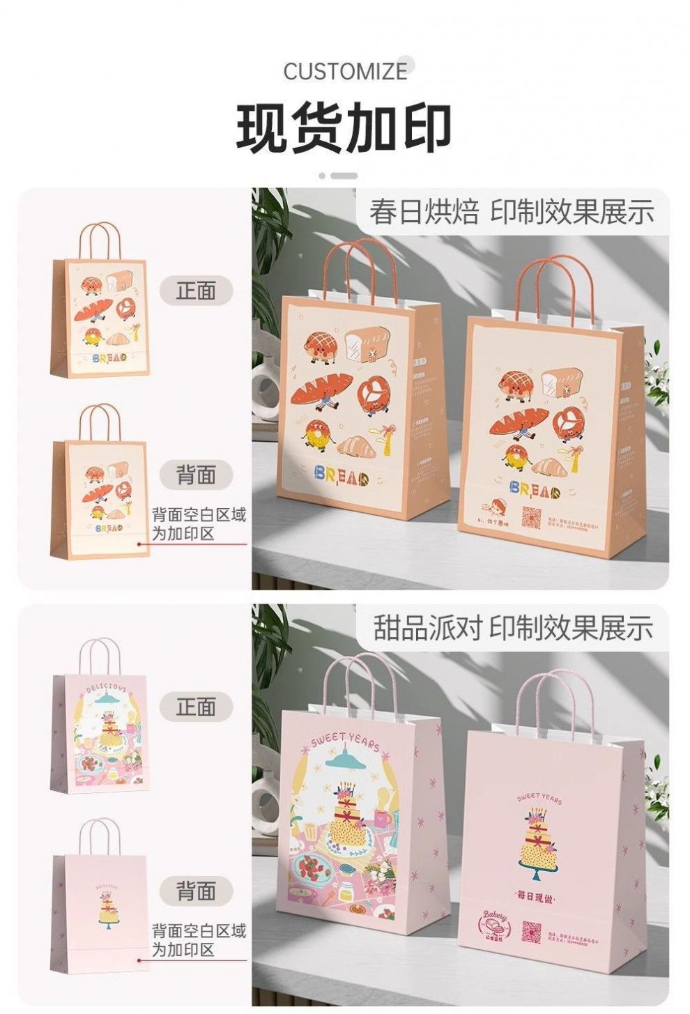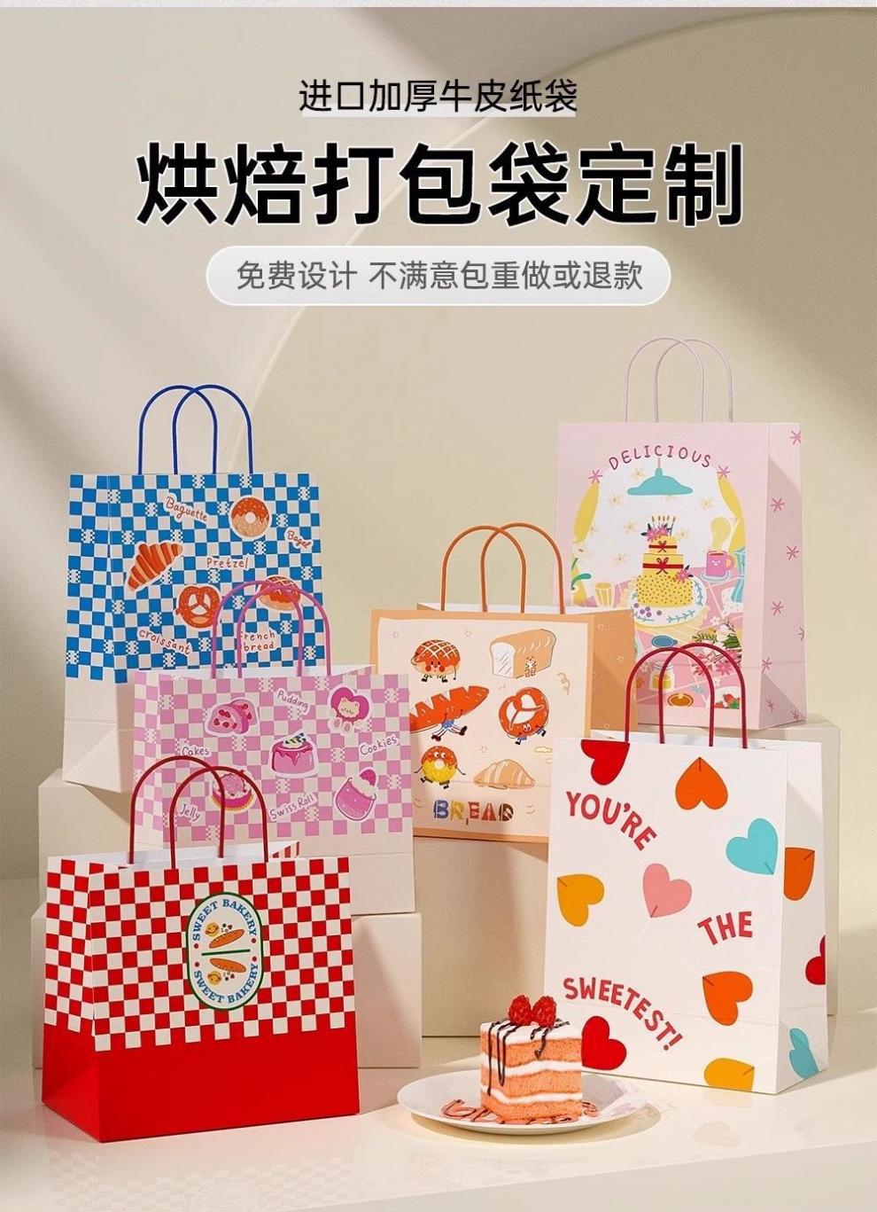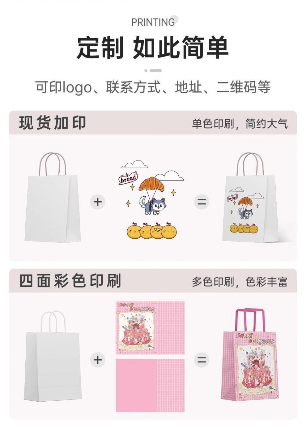 베이킹 케이크 디저트 토트 백 테이크 아웃 포장 백 크래프트 종이 봉투 포장 선물 가방 인쇄