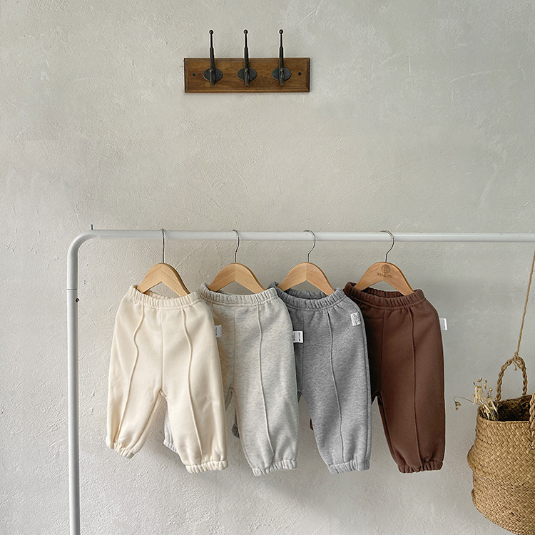 한국 스타일 아동복 두꺼운 바지 봄, 가을 스타일 소녀 벨벳 캐주얼 바지 소년 따뜻한 겨울 캐주얼 루즈 바지스토어 가기