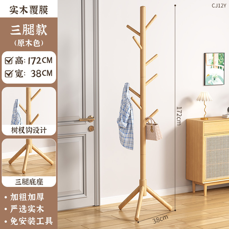 코트 랙 바닥에서 천장까지 가정용 침실 옷걸이 거실 가을, 겨울 옷걸이 수직 간단한 단단한 나무 가방 걸이 나무스토어 가기