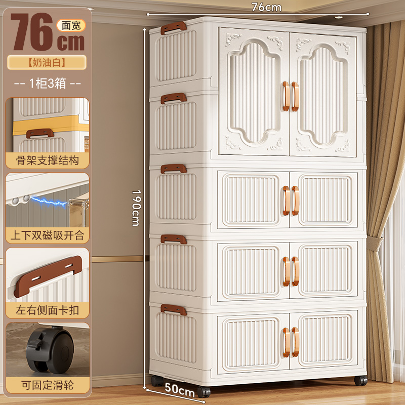 • 밀크화이트 폭 76cm [1단옷장+3단수납함] 옷걸이 5개 포함