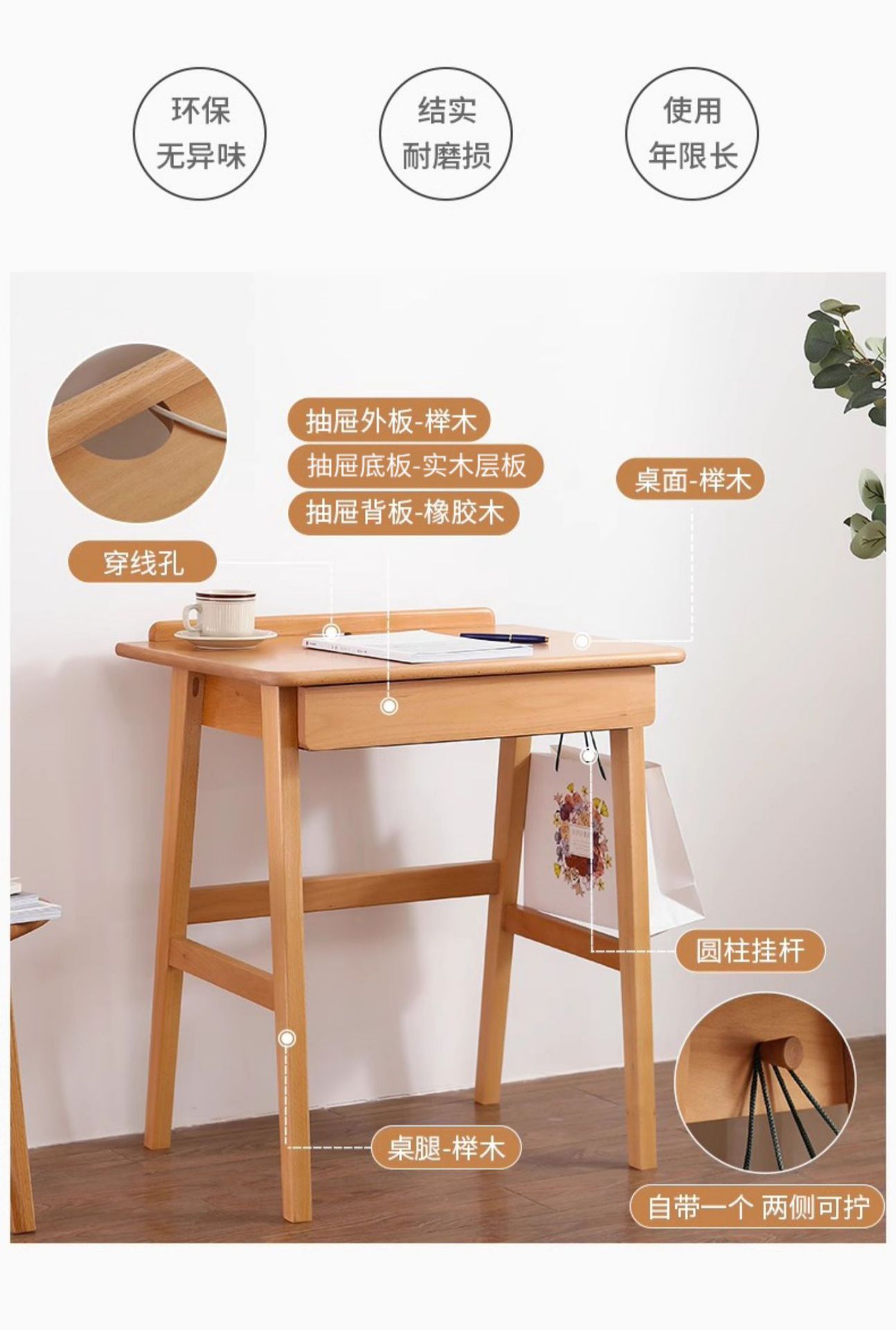 단단한 나무 작은 책상 너도밤 나무 컴퓨터 책상 어린이 학습 테이블 침대 옆 북유럽 침실 간단한 가정 학생 테이블 L &스토어 가기