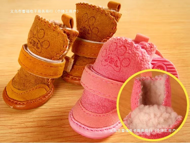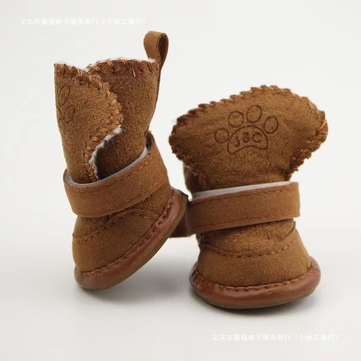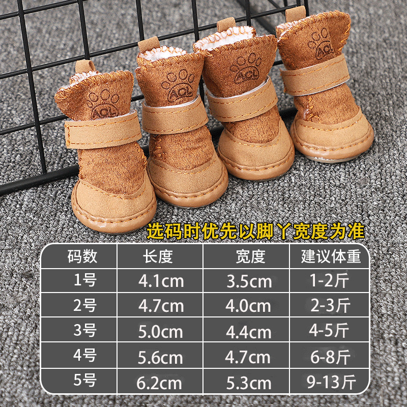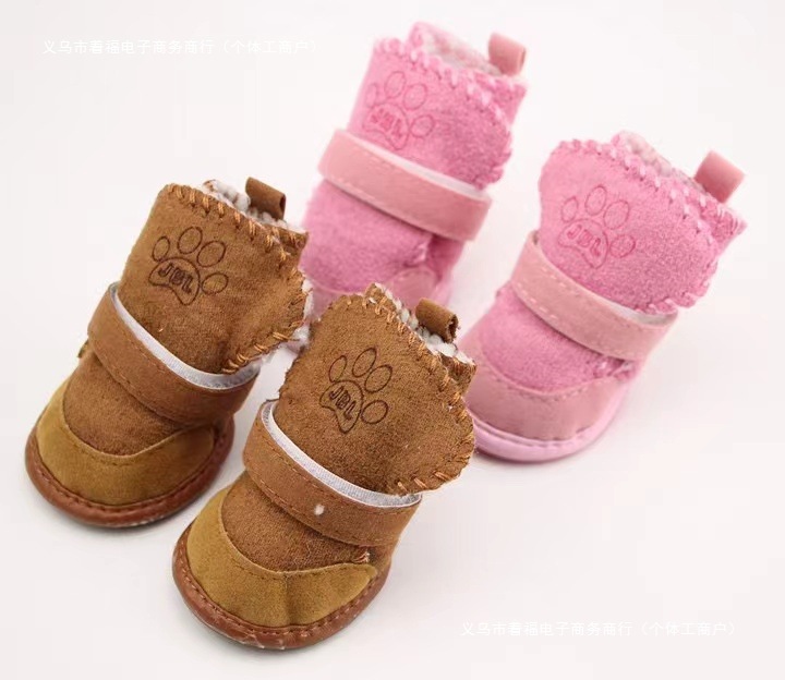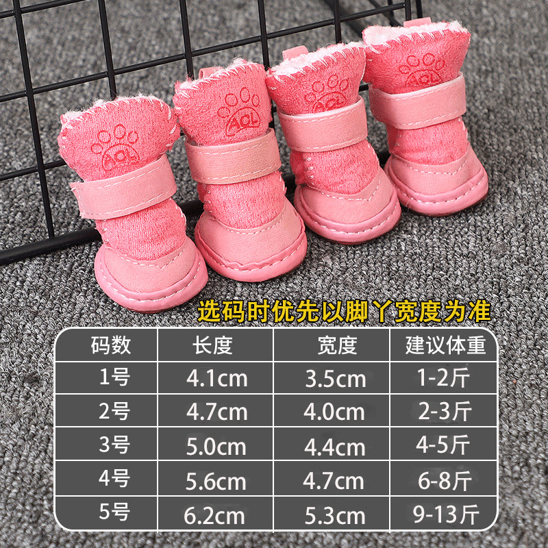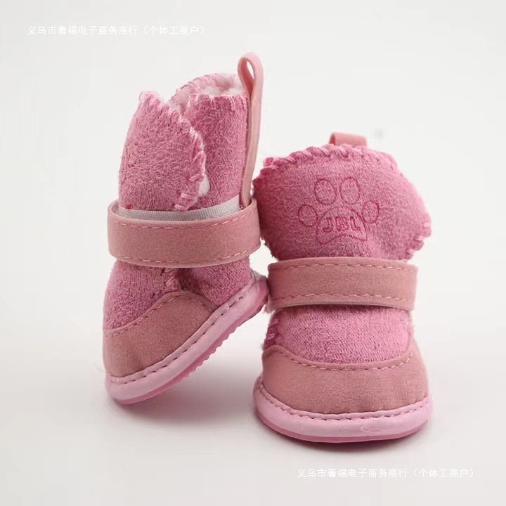 신발 치와와 고양이 가을 겨울 스노우 부츠 신발 개 테디 신발 미끄럼 방지 따뜻한 양털 면화 신발 개 애완 동물스토어 가기