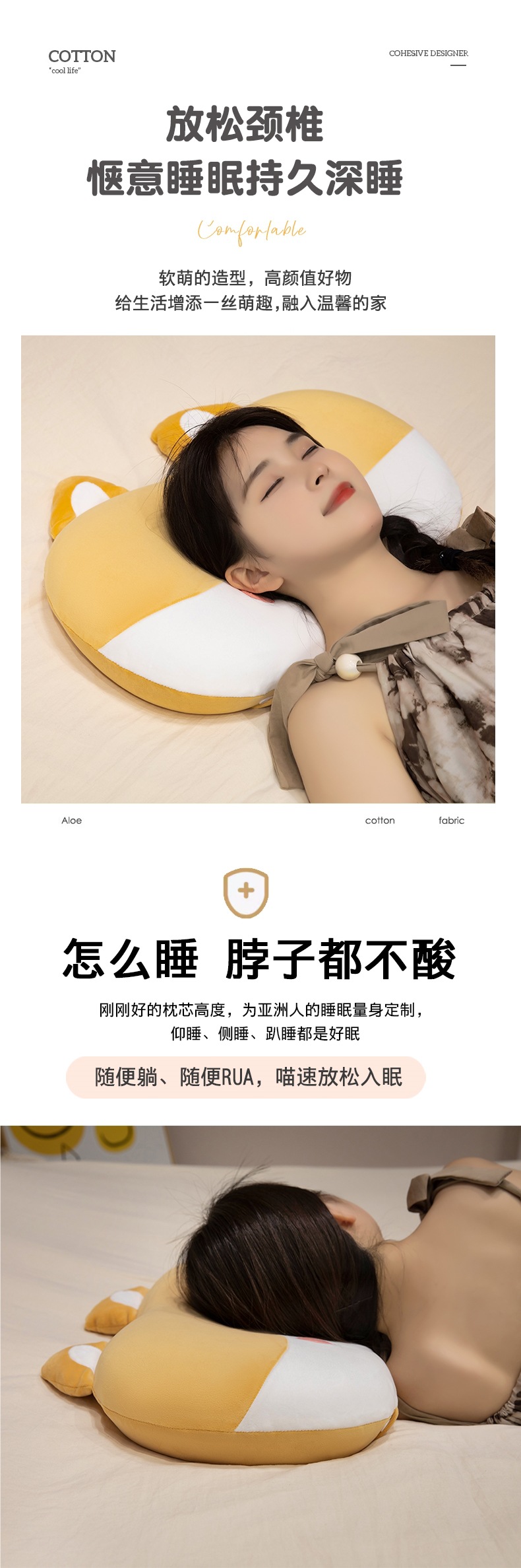 • 귀여운 고양이 (베개심 + 베갯잇) [DC 탈부착 및 세탁 가능한 메모리폼 베개]