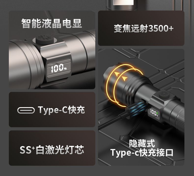 • 폭발적인 밝기 66000M [배터리 수명 향상 + 고속 충전] - LCD 디지털 디스플레이 - 망원 줌 - 스마트 고속 충전
