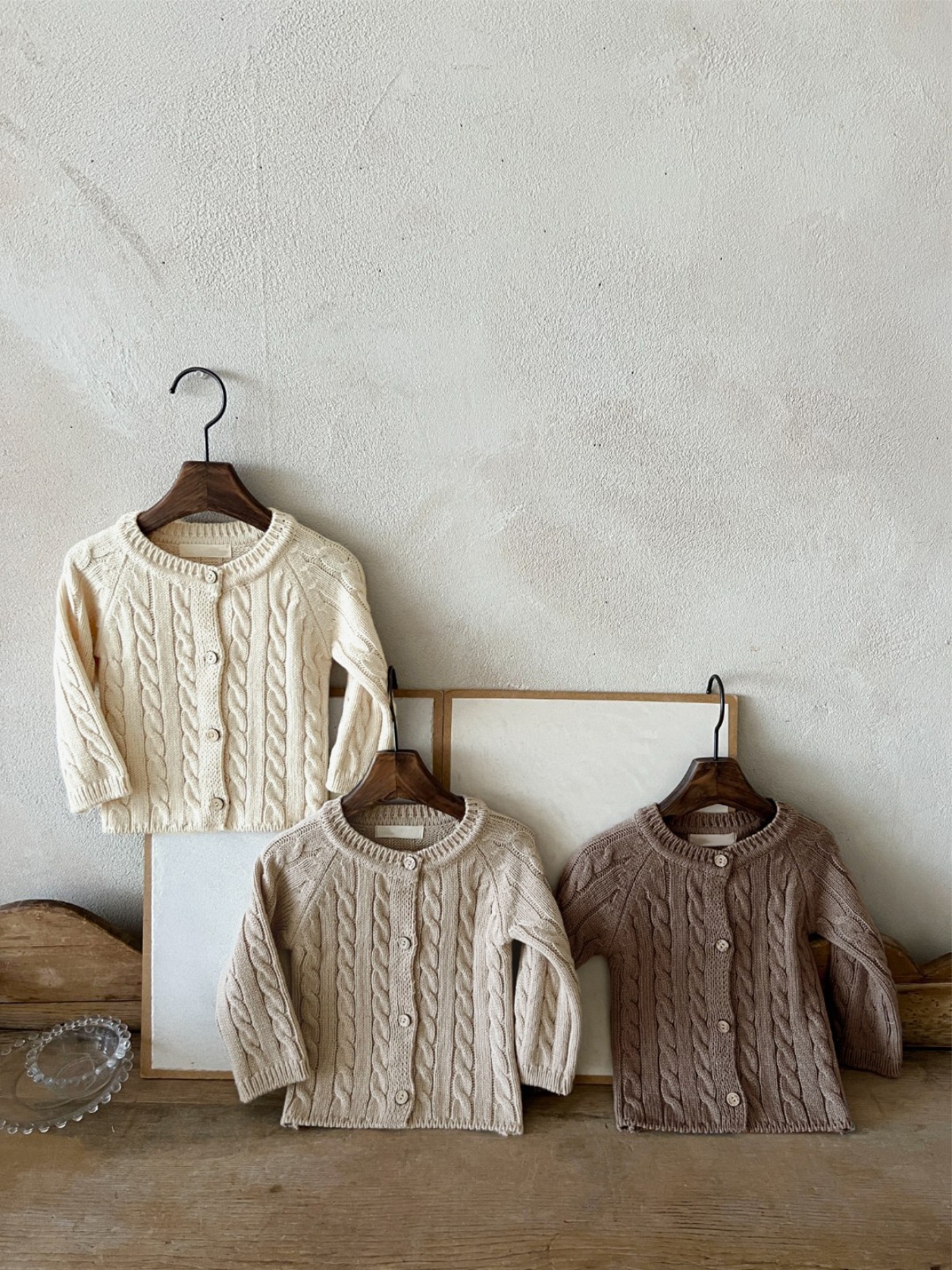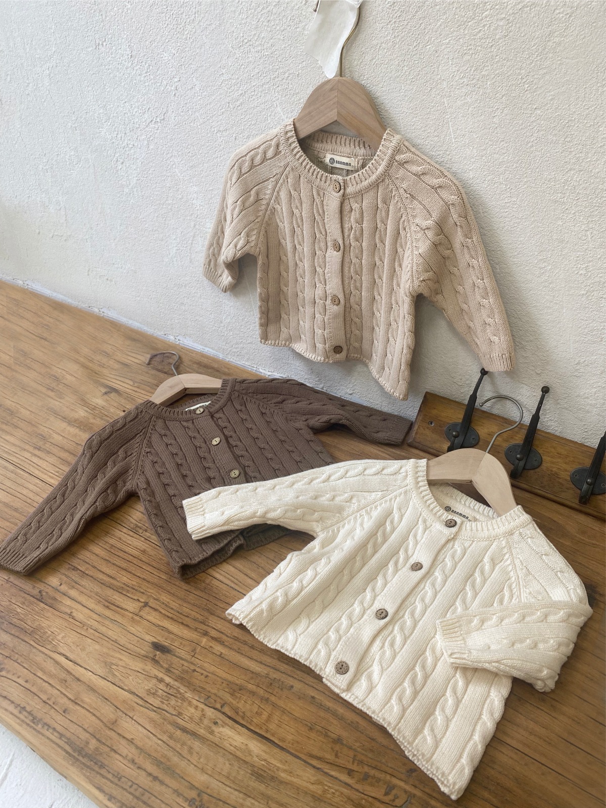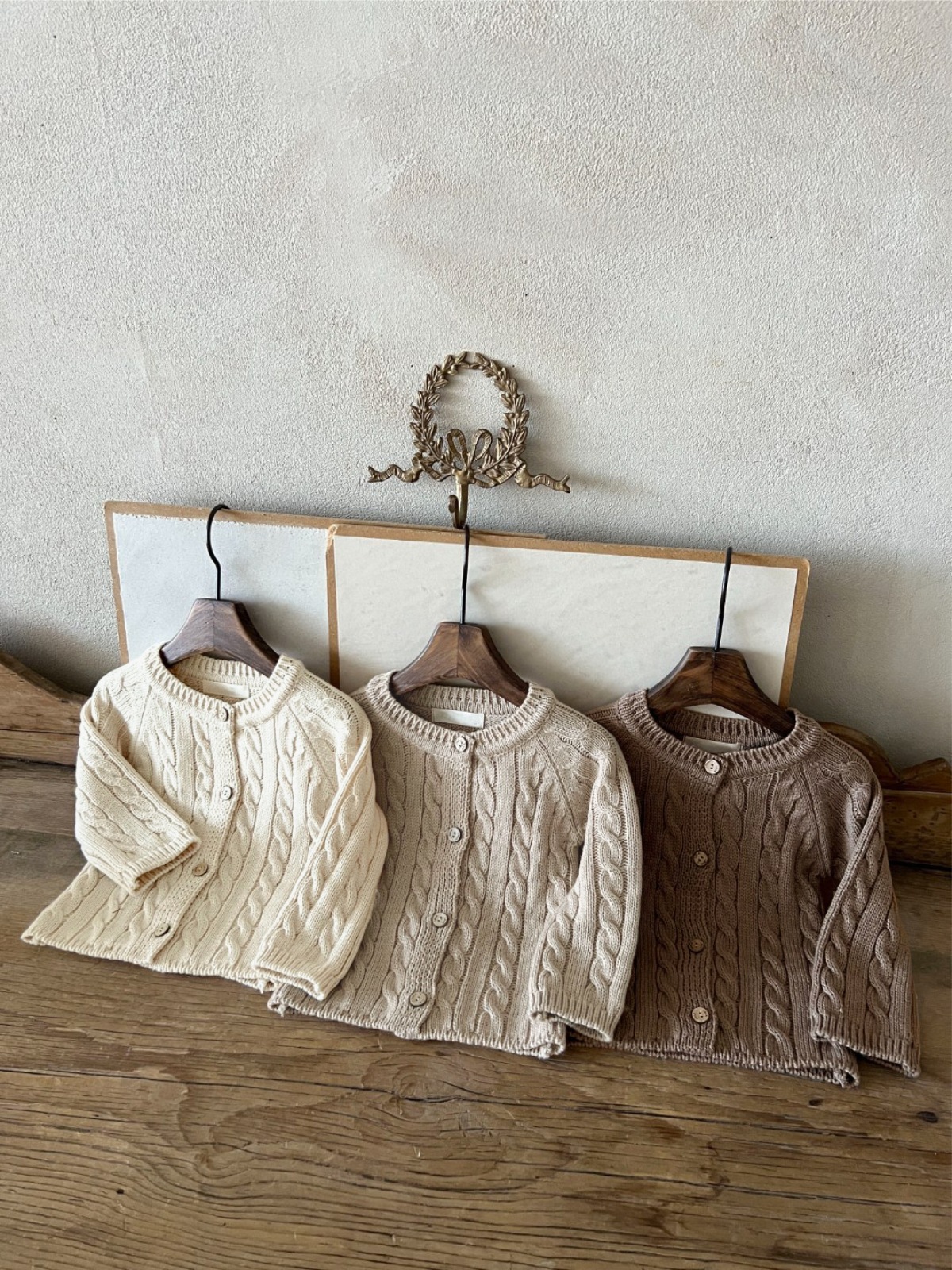 소년 스웨터 재킷 2025 새로운 봄 아기 단색 니트 카디건 유행 아기 소녀 트위스트 스웨터스토어 가기