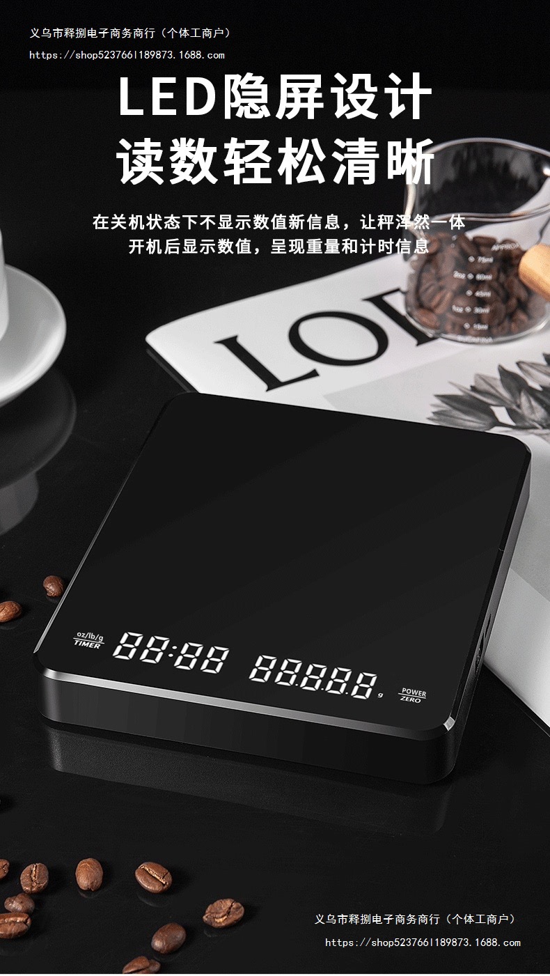 핸드브루 커피 전자저울, 타이밍, 충전식 주방저울, 베이킹 저울, 무게 표시, 방수, 일상생활, 가정용스토어 가기