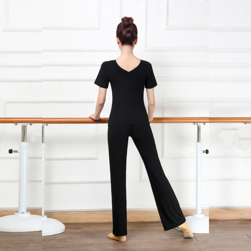 여성 예술 시험을위한 새로운 스타일의 연습복 세트 댄스 바디 부츠 팬츠 모달 모던 댄스 슈트 반팔 Lanqi스토어 가기
