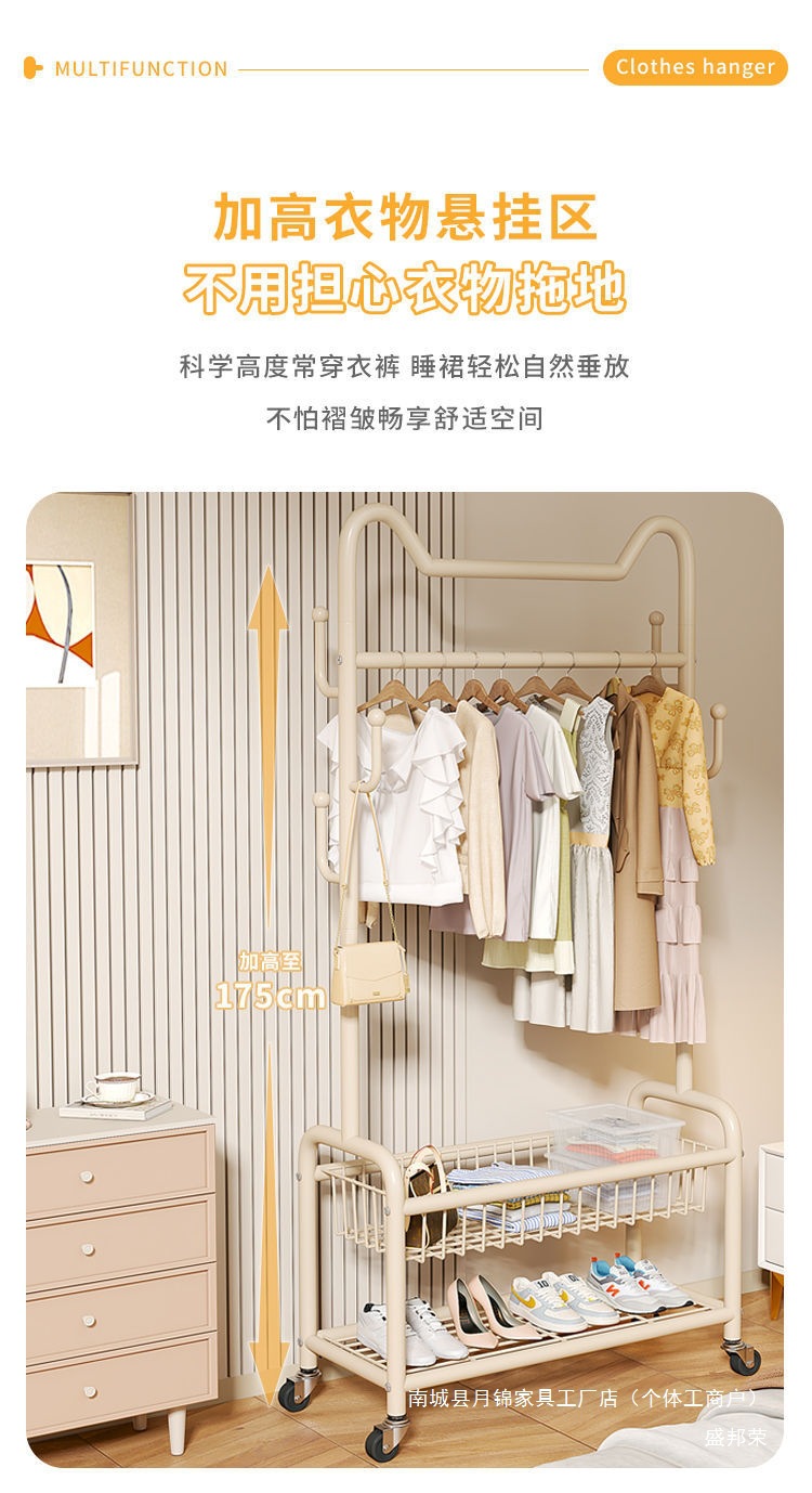 가벼운 고급 옷걸이, 고양이 귀 옷걸이, 실내 옷걸이, 발코니 가정용 건조대, 바닥에서 천장까지 이동식 옷걸이