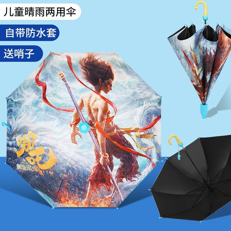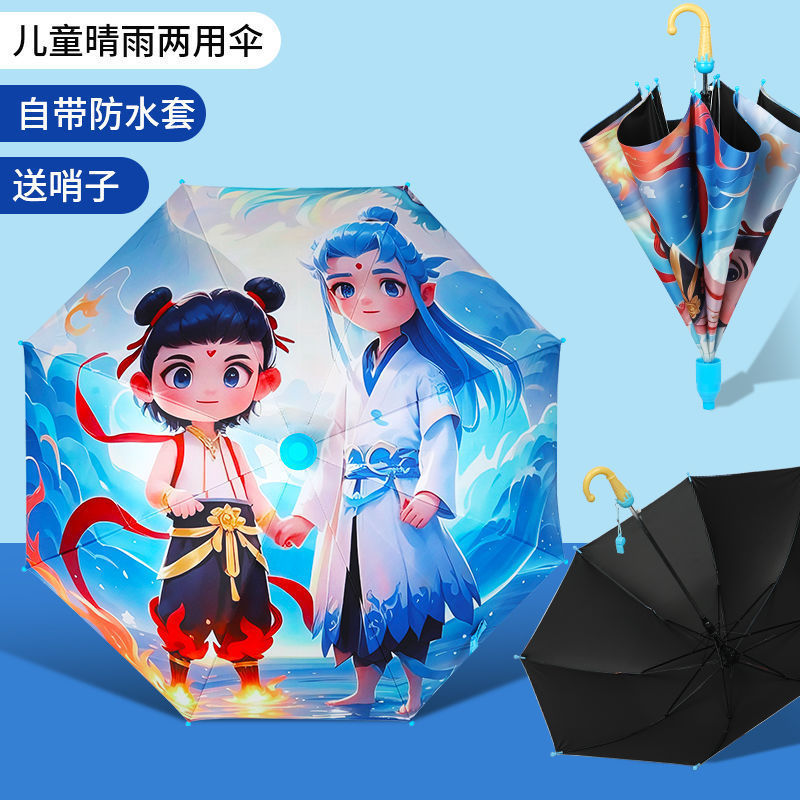 어린이 우산, Nezha Ao Bing 아기 유치원, 귀엽고 가벼운 자동 파라솔, 소년 소녀용