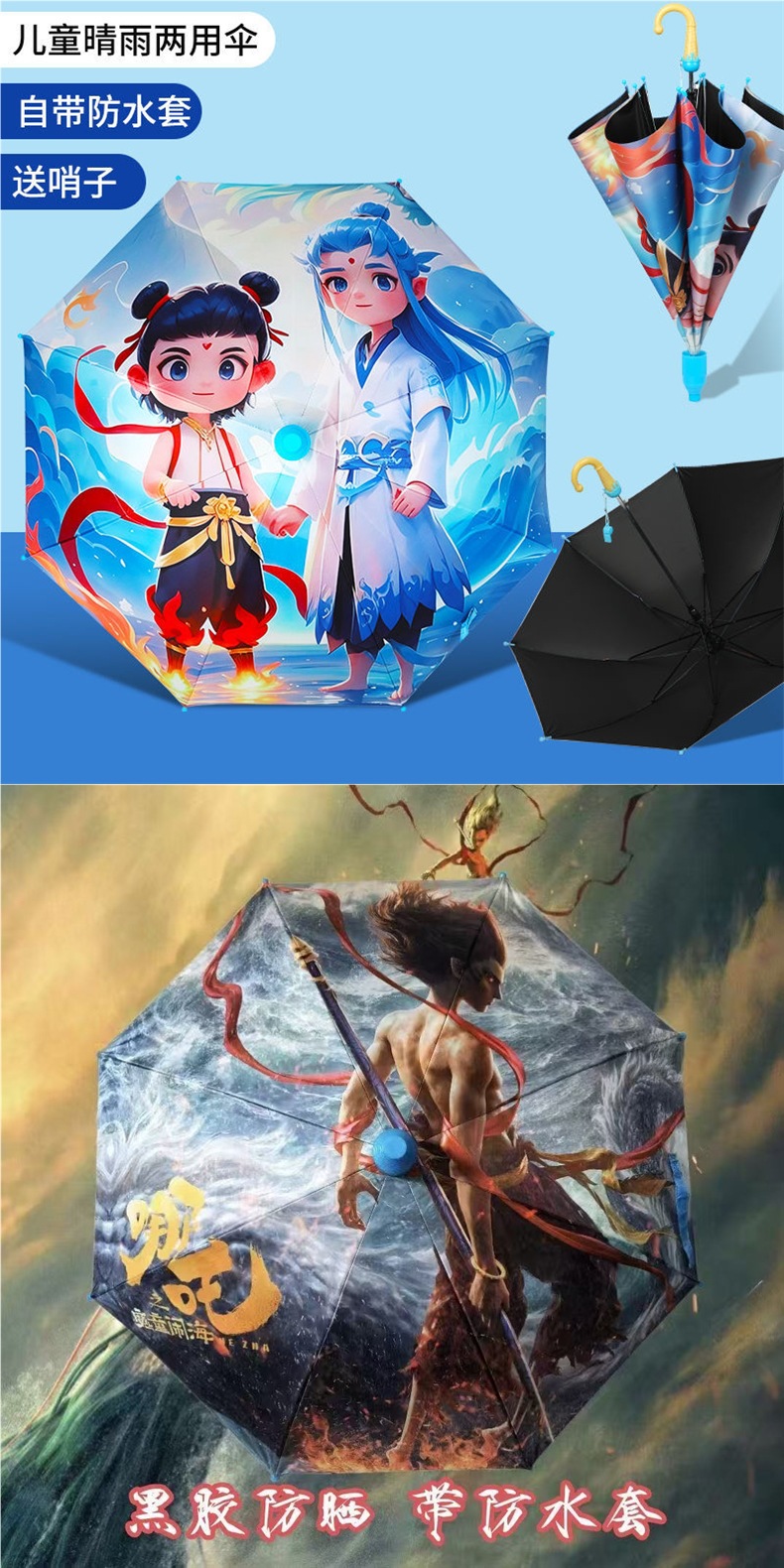 어린이 우산, Nezha Ao Bing 아기 유치원, 귀엽고 가벼운 자동 파라솔, 소년 소녀용스토어 가기