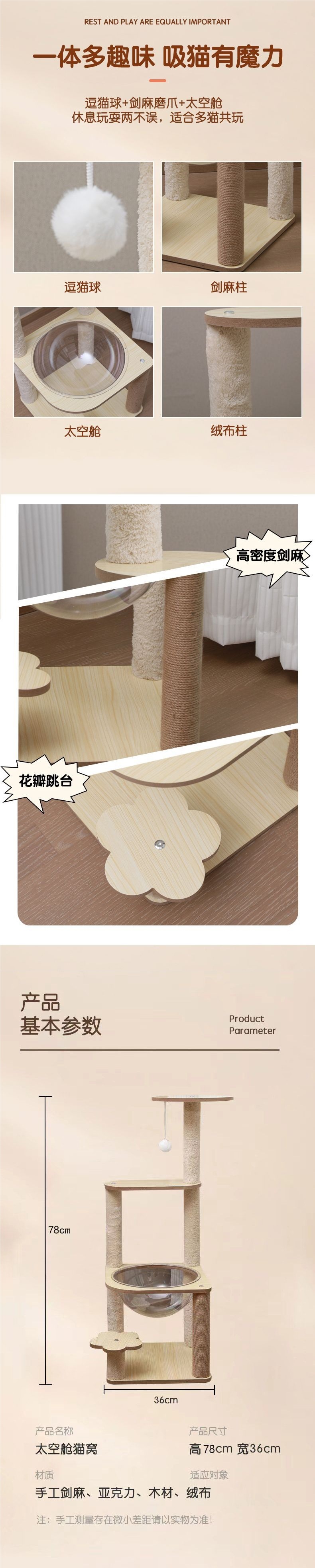 고양이 클라이밍 프레임, 나무, 고양이 스크래치 보드, 우주 캡슐, 산호초 스크래치 컬럼, 점프 플랫폼, 장난감, 고양이 용품, 일체형 다층 둥지