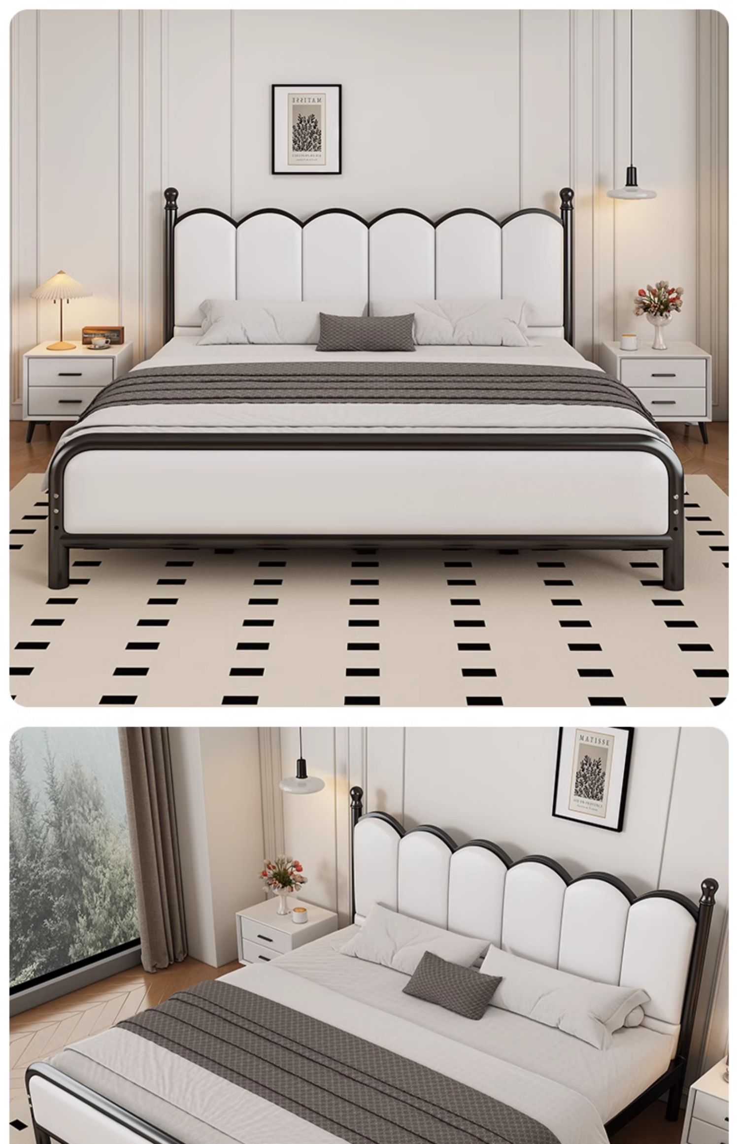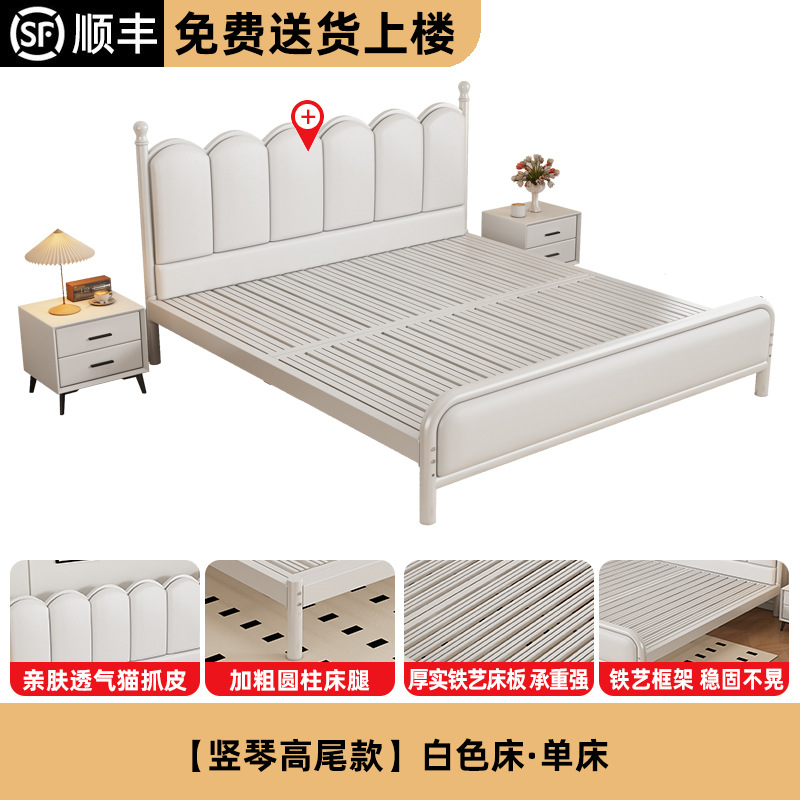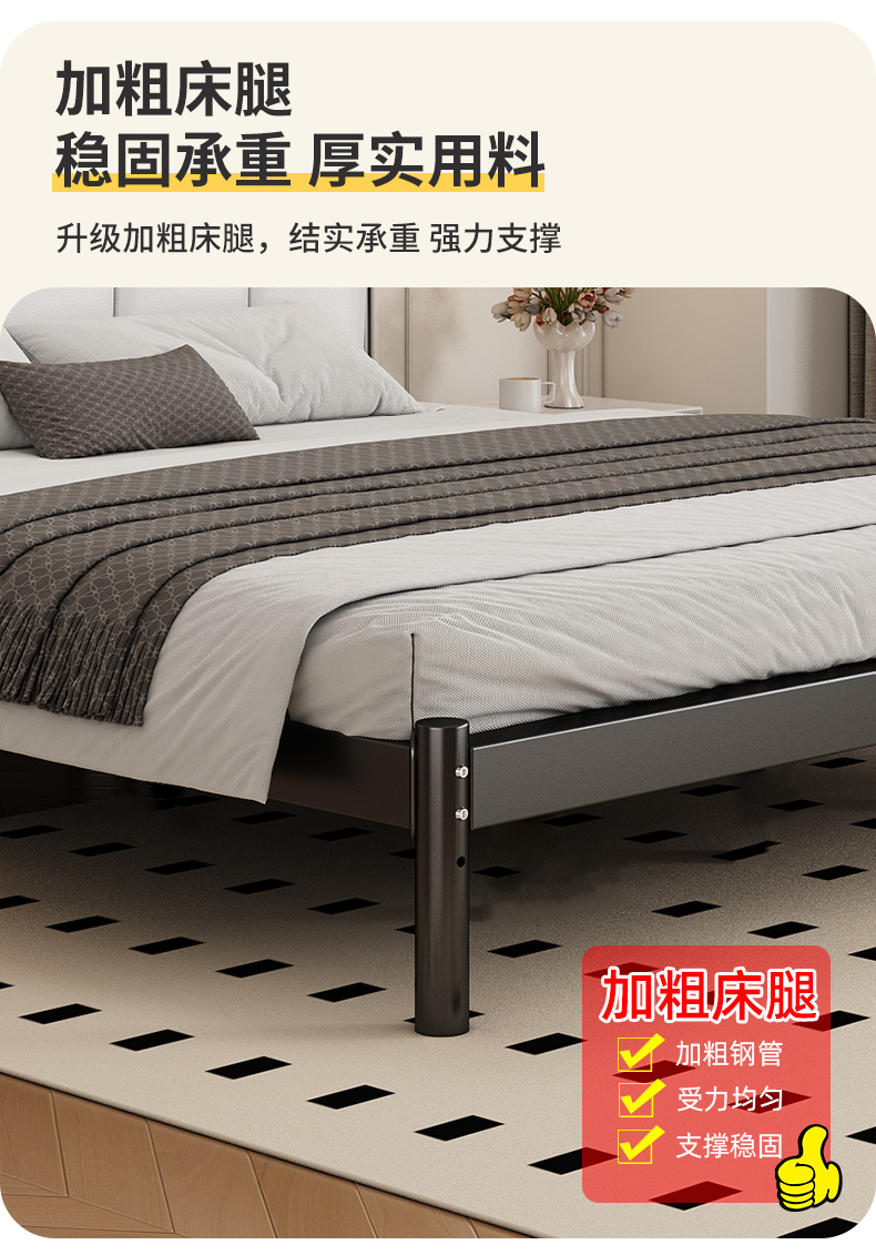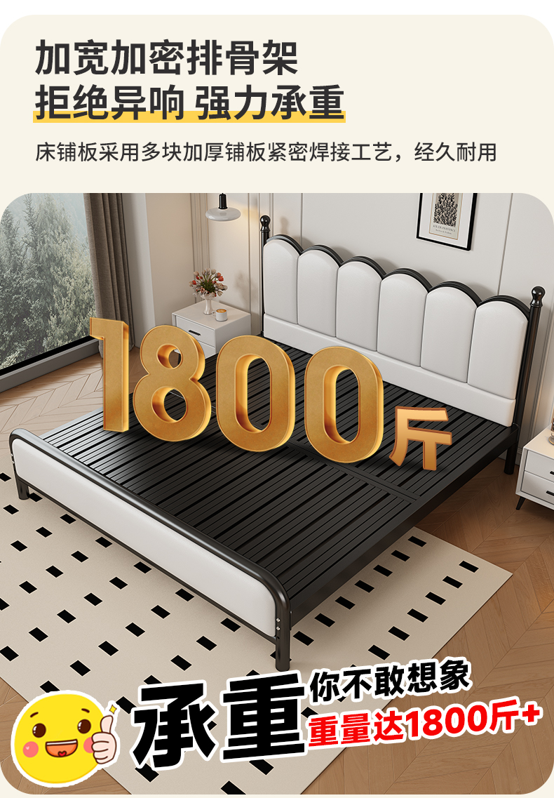 철제 침대 더블 침대 현대적인 간단한 부드러운 침대 1.5m 두꺼운 강화 철 프레임 싱글 침대 임대 어린이 철제 침대