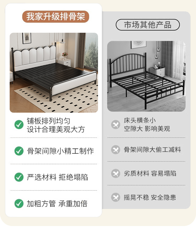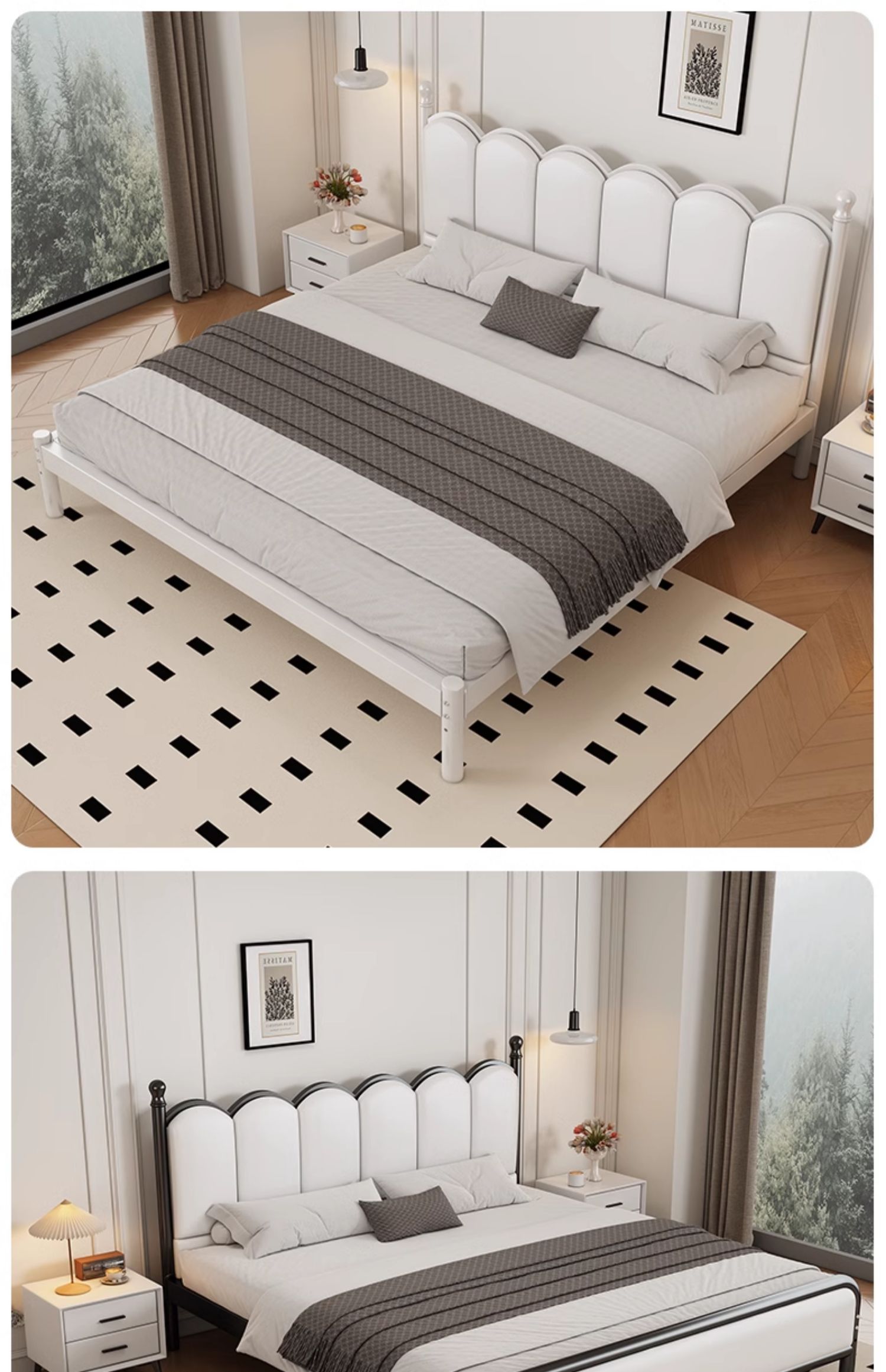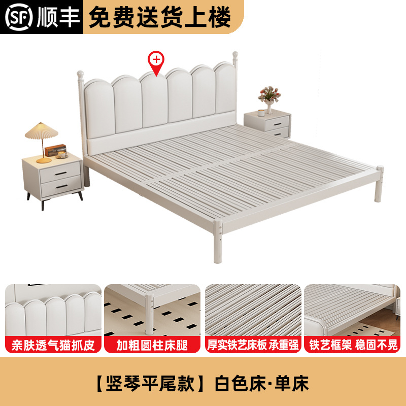 철제 침대 더블 침대 현대적인 간단한 부드러운 침대 1.5m 두꺼운 강화 철 프레임 싱글 침대 임대 어린이 철제 침대