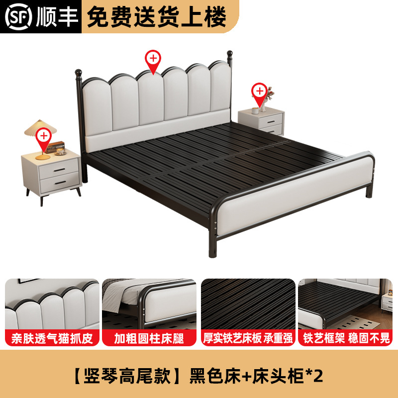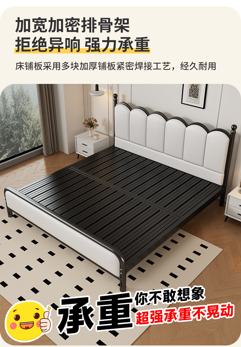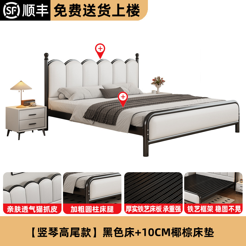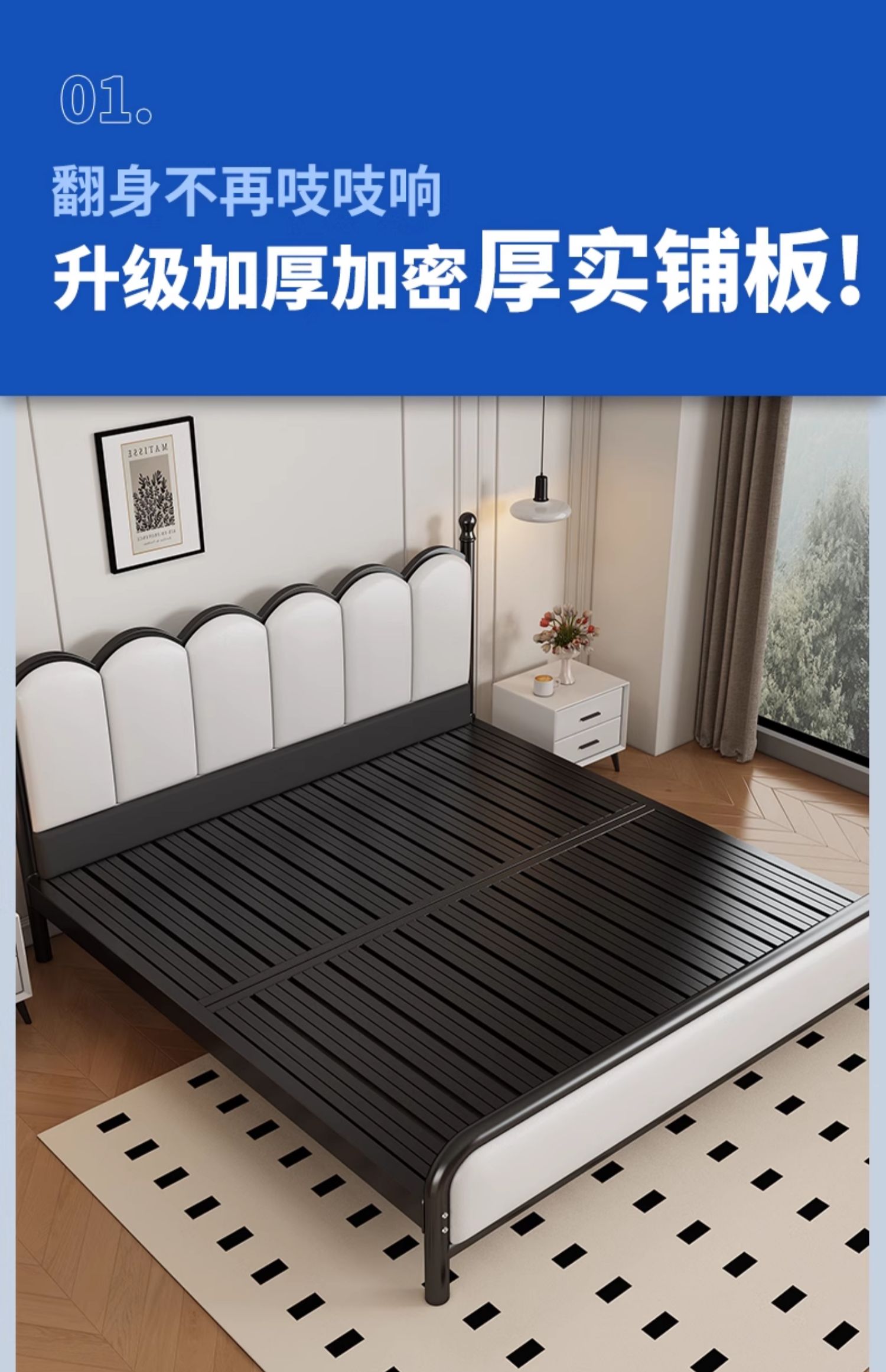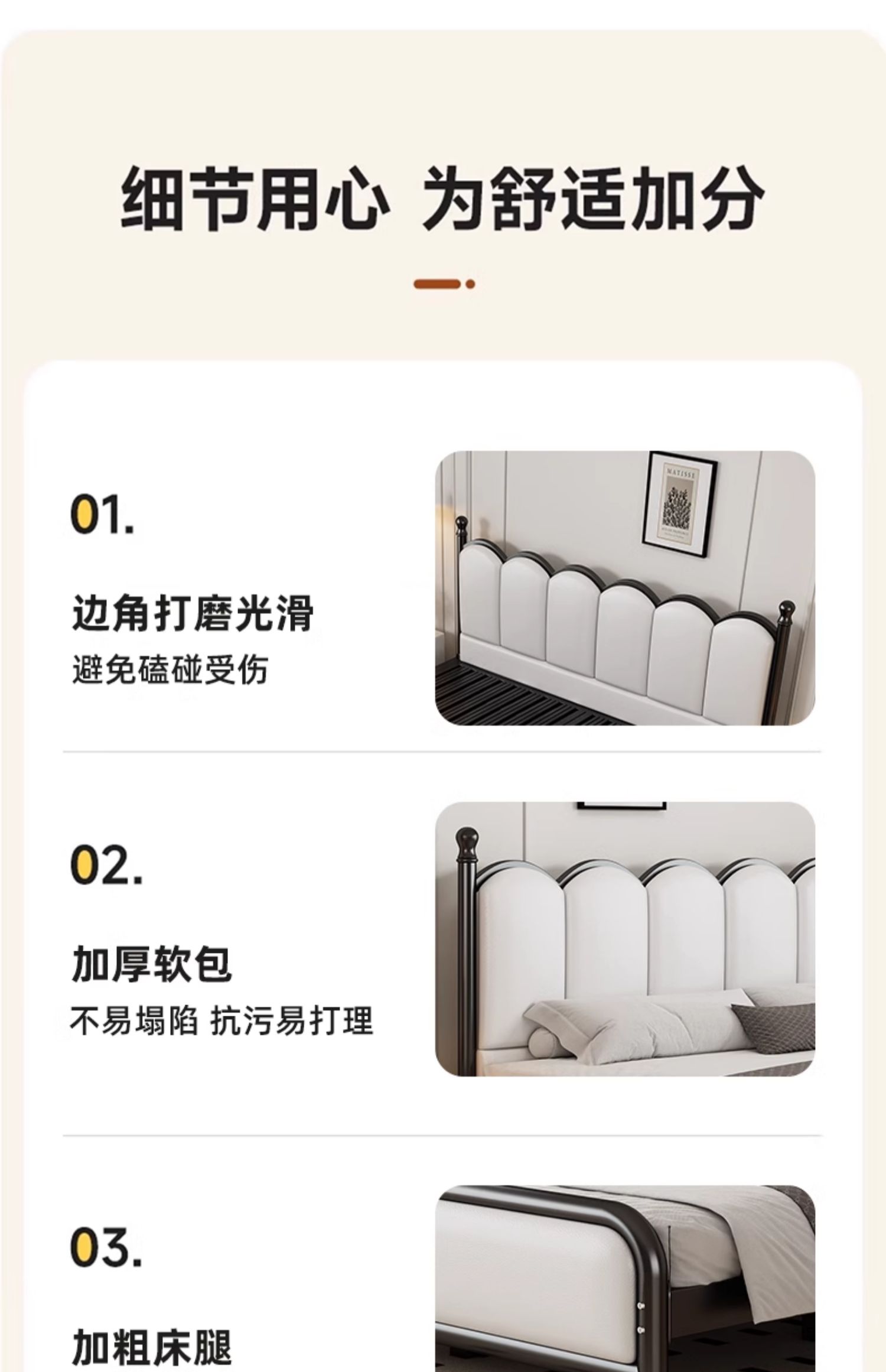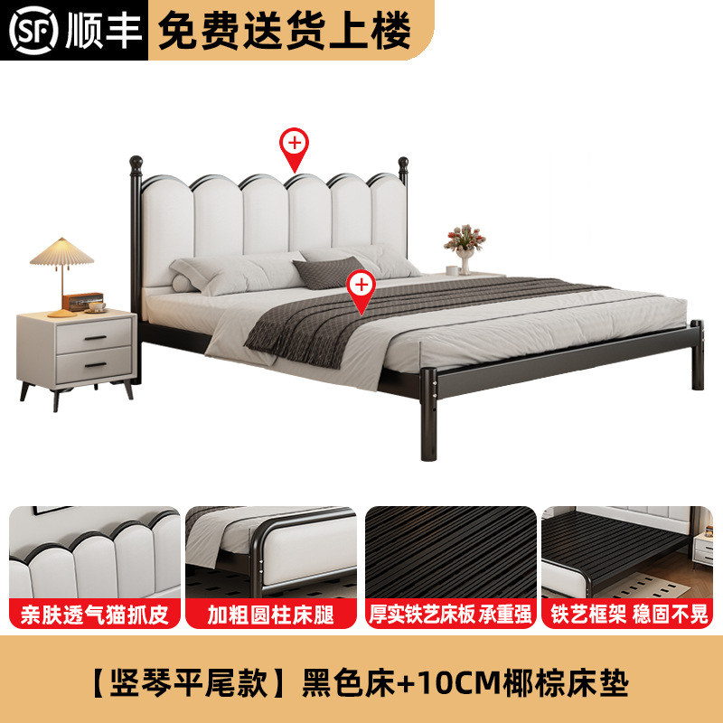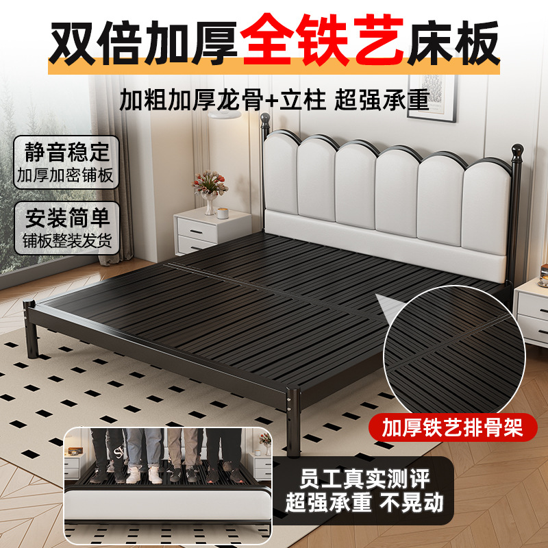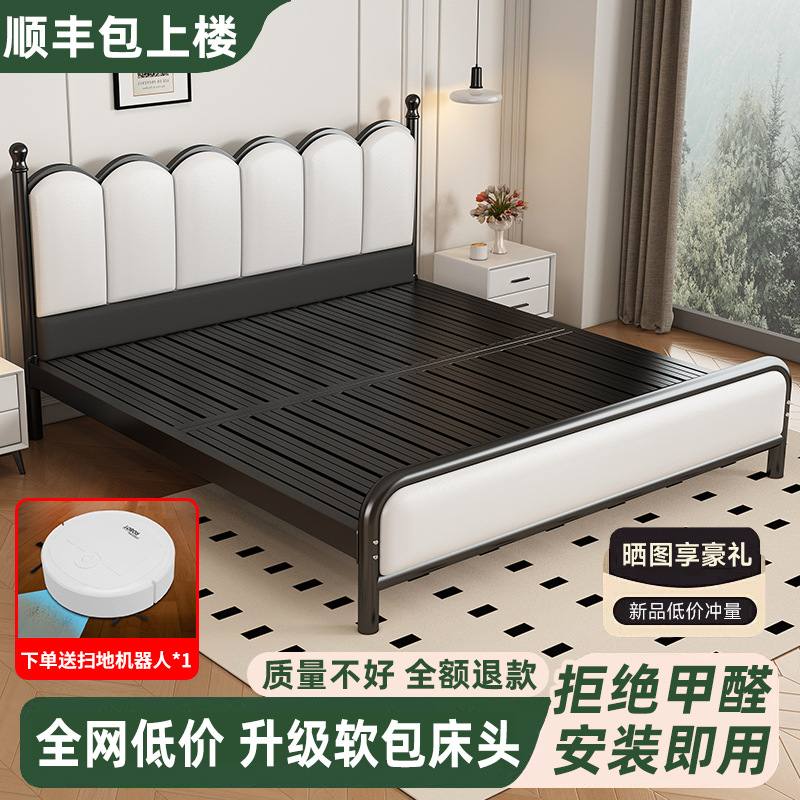 철제 침대 더블 침대 현대적인 간단한 부드러운 침대 1.5m 두꺼운 강화 철 프레임 싱글 침대 임대 어린이 철제 침대스토어 가기