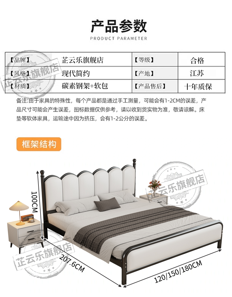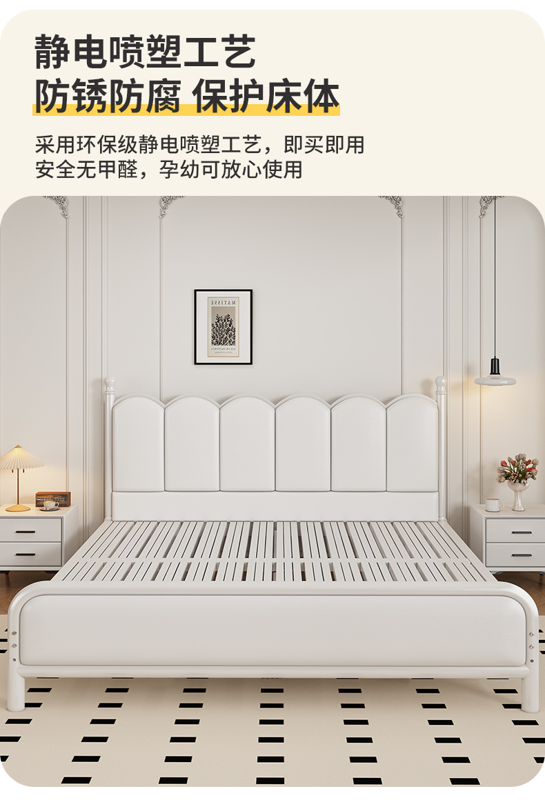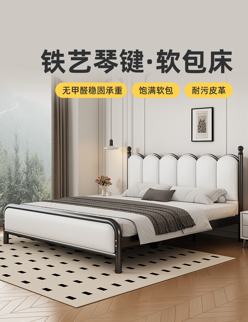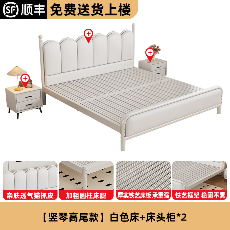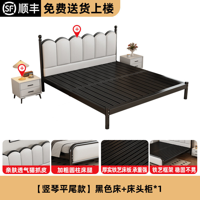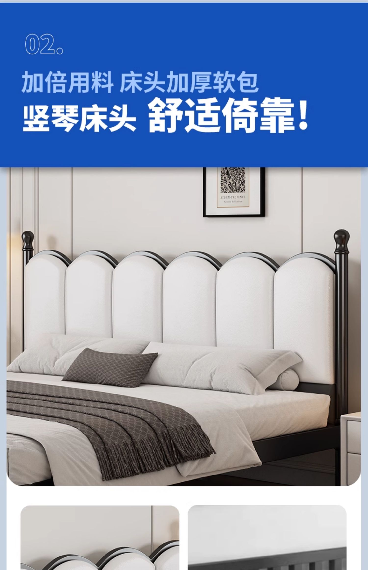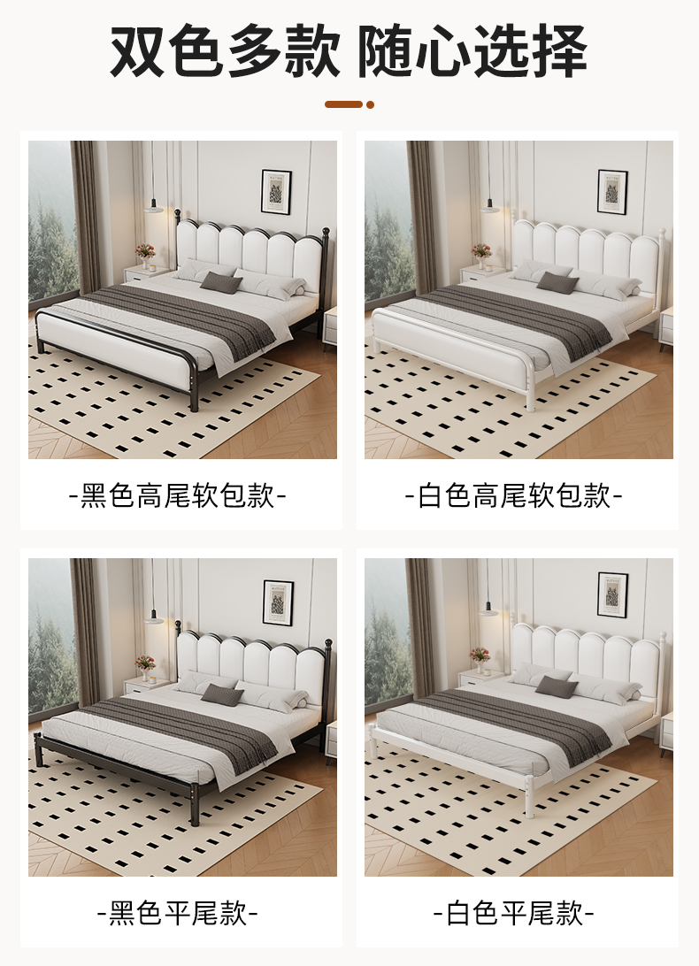 철제 침대 더블 침대 현대적인 간단한 부드러운 침대 1.5m 두꺼운 강화 철 프레임 싱글 침대 임대 어린이 철제 침대스토어 가기