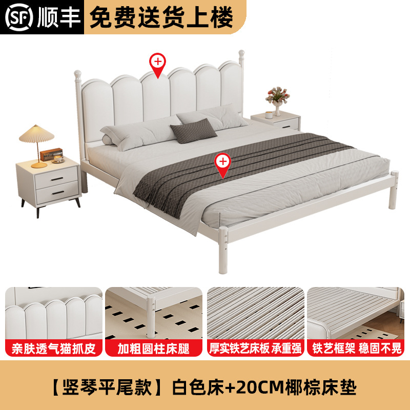 • [하프 플랫 테일 모델] 화이트 침대 + 20cm 코코넛 야자 매트리스 + 침대 옆 테이블 * 1 (안정적이고 내하중)