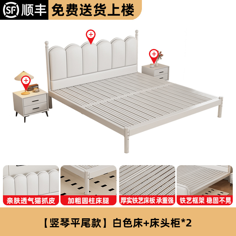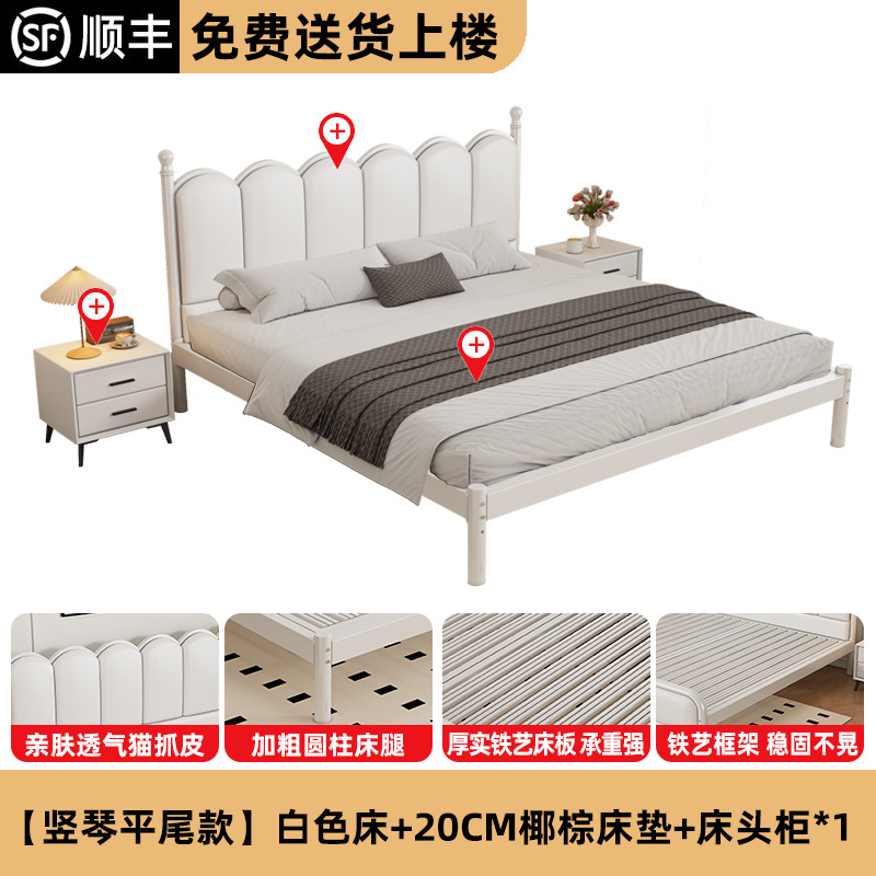 • [하프 플랫 테일 모델] 화이트 침대 + 10cm 코코넛 야자 매트리스 + 침대 옆 탁자*2 (안정적이고 내하중)