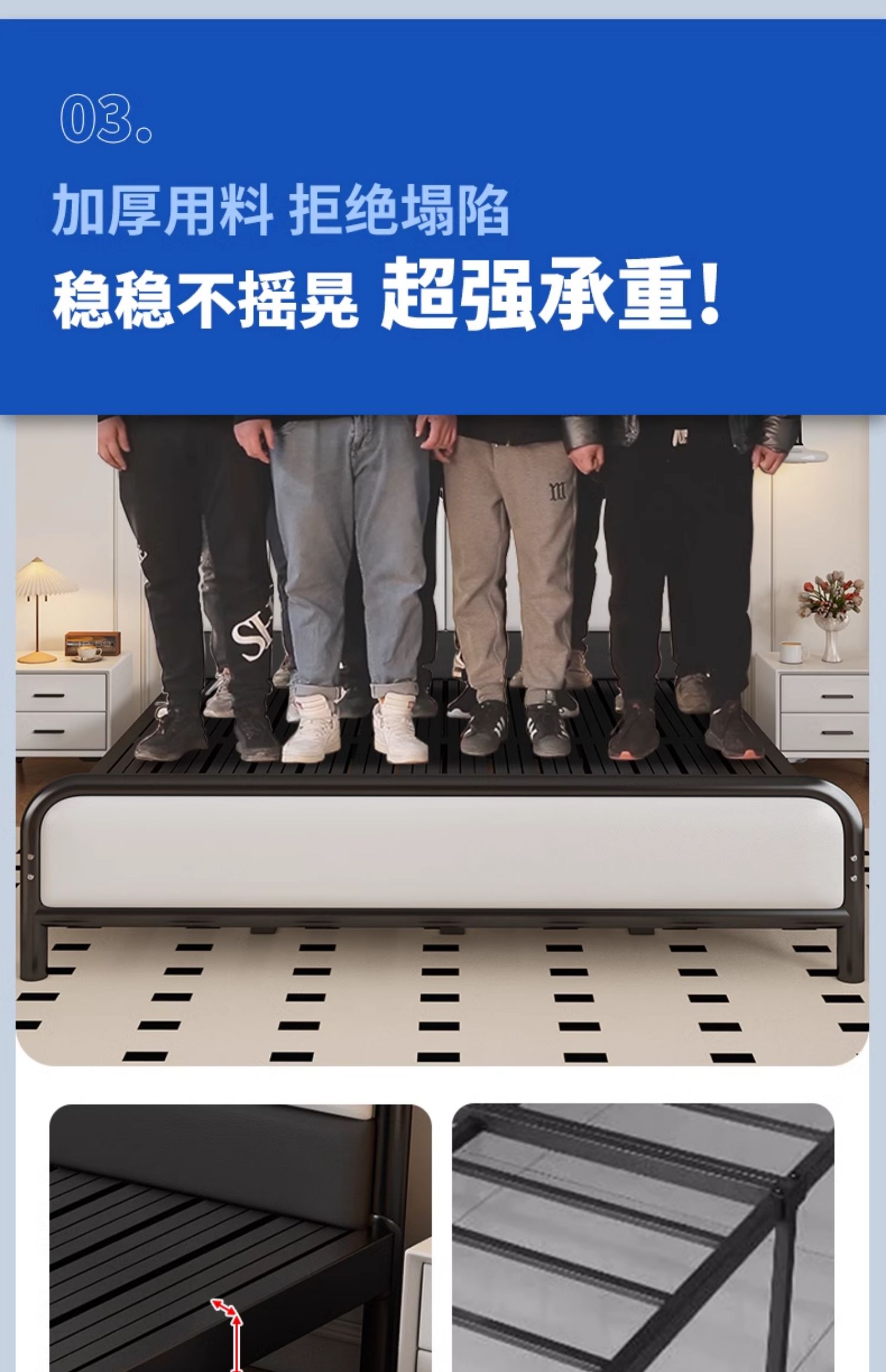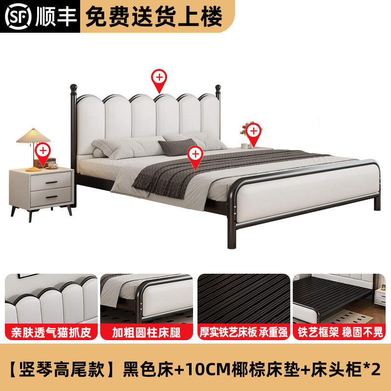 • [하프 플랫 테일 모델] 블랙 침대 + 20cm 코코넛 야자 매트리스 + 침대 옆 테이블 * 1 (안정적이고 내하중)