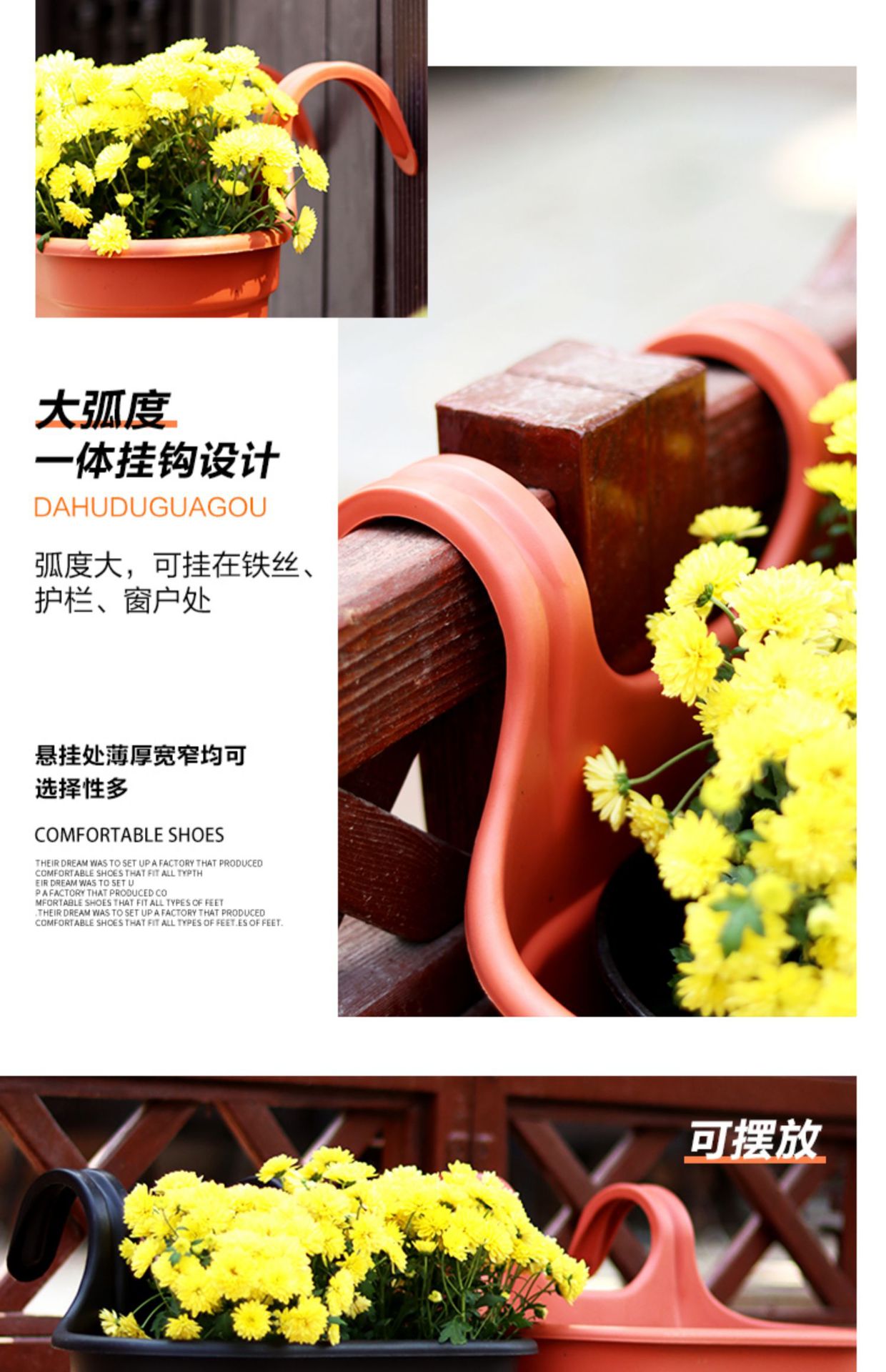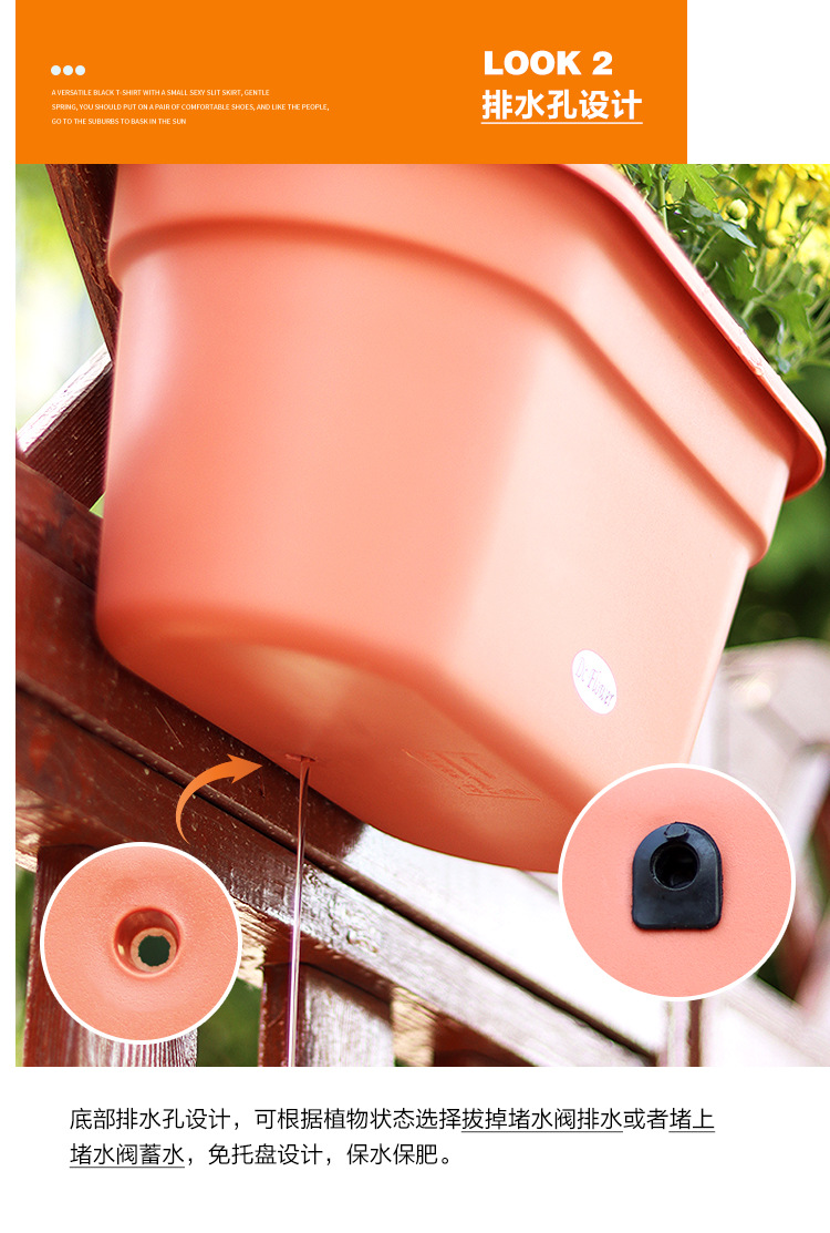 Dr. Flower의 발코니 벽걸이 화분, 반원형 플라스틱 모조 목재 걸이형 물 저장 화분, 후크가 있는 녹색 난초 화분