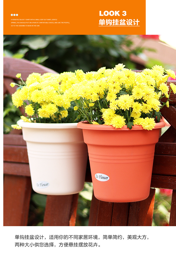 Dr. Flower의 발코니 벽걸이 화분, 반원형 플라스틱 모조 목재 걸이형 물 저장 화분, 후크가 있는 녹색 난초 화분스토어 가기
