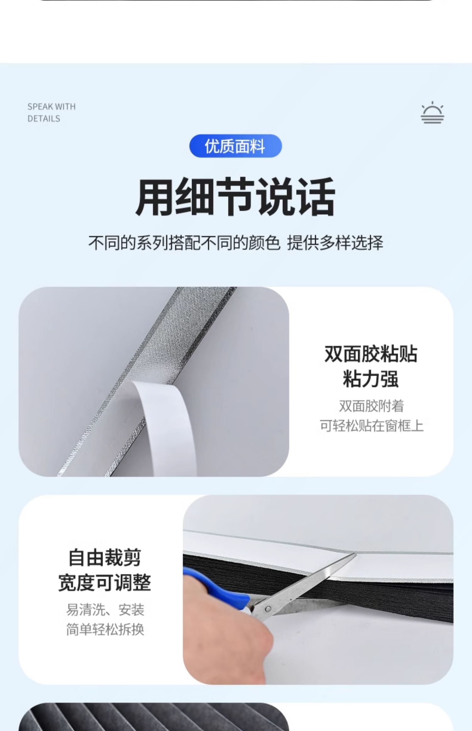 • 60*120cm (창 높이 1m에 적용 가능) 클립 + 벨크로 포함