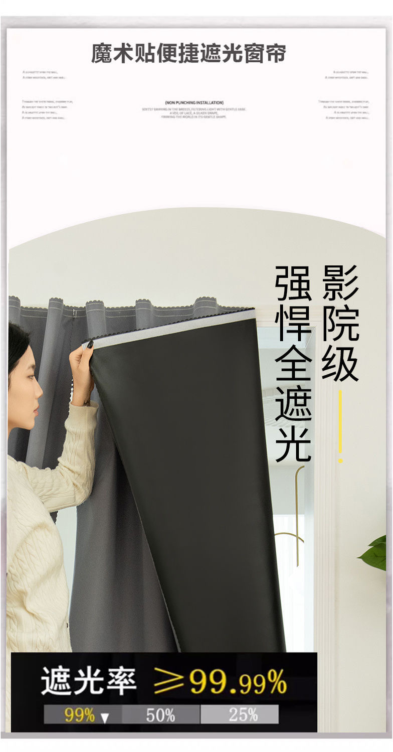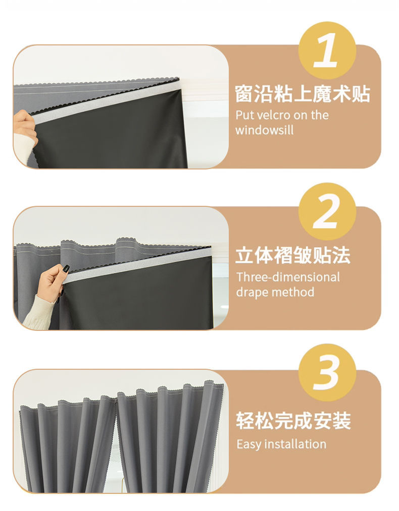 완제품을 통한 국경 간 아마존 소매 배송, 펀치 없는 커튼, 완전 암막 차양 커튼, 발코니 간이 접착 커튼