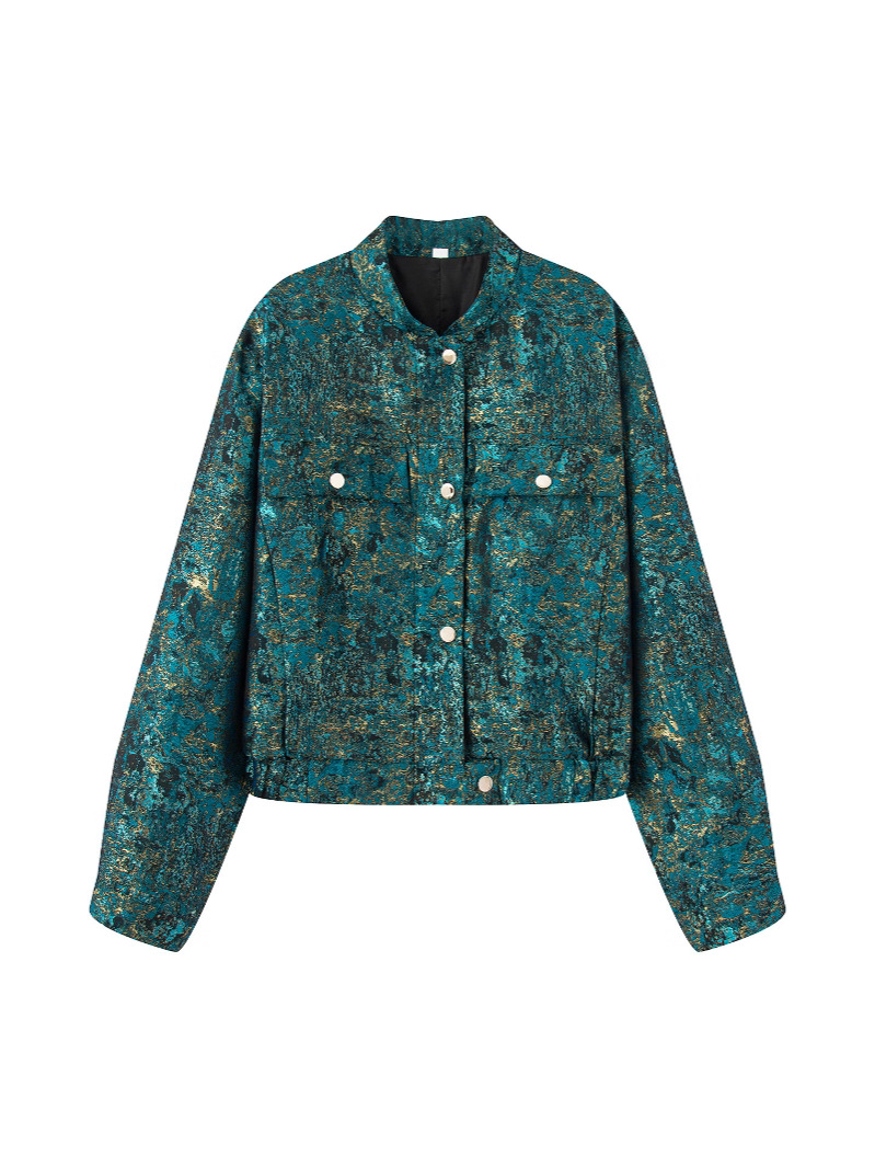 2025 가을 새로운 크로스 보더 여성 의류 유럽과 미국의 긴팔 재킷 여성상의 크로스 보더 메탈릭 질감 탑스토어 가기