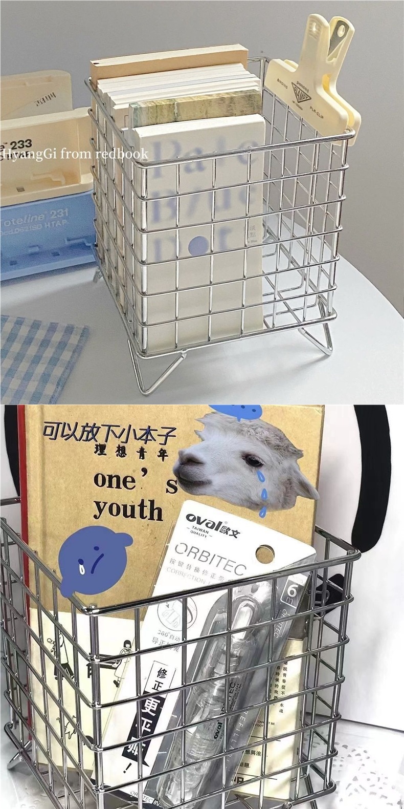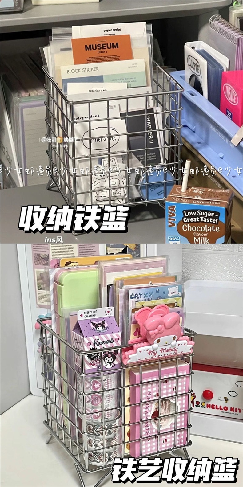 Ins 철제 보관 바구니 사무실 기숙사 보관 상자 데스크탑 대용량 화장품 잡다한 커피 보관함