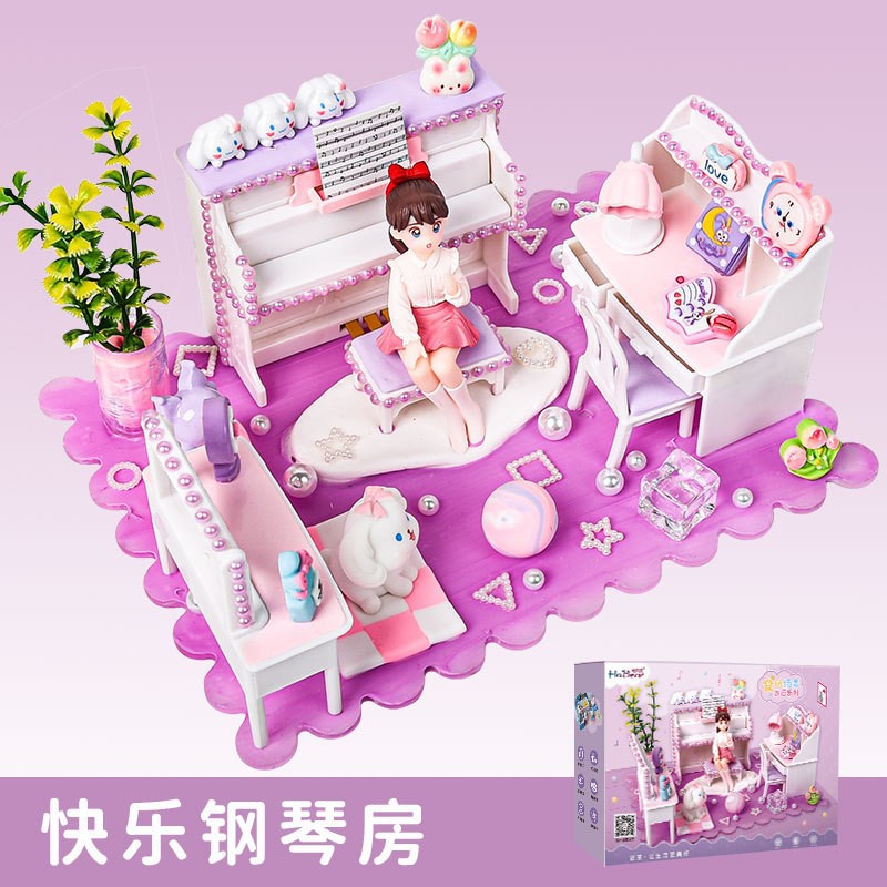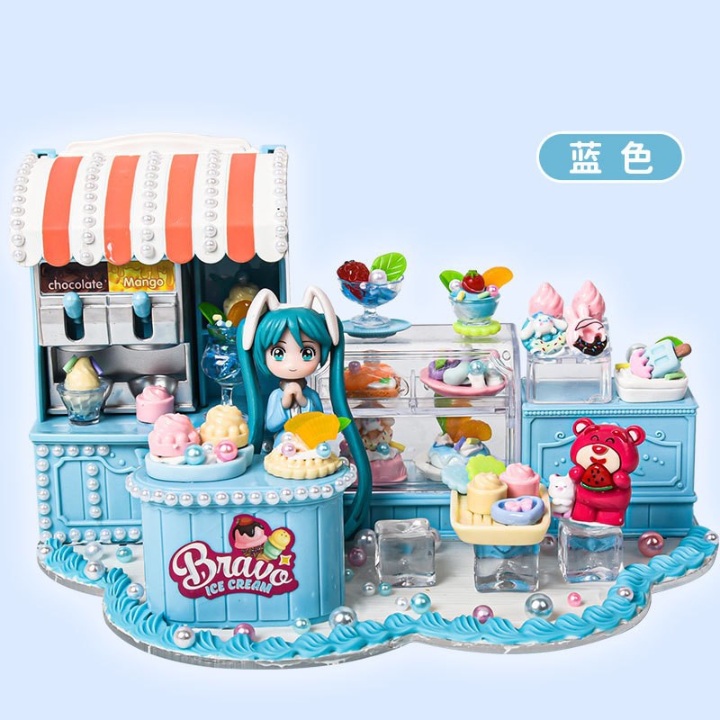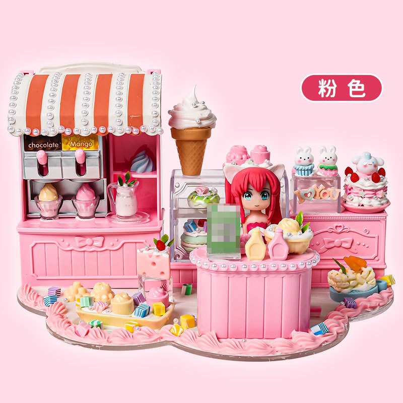 어린이 DIY 미니 음식 장난감 시뮬레이션 아이스크림 가게 소녀 놀이 집 수제 집 조립 교육 장난감스토어 가기